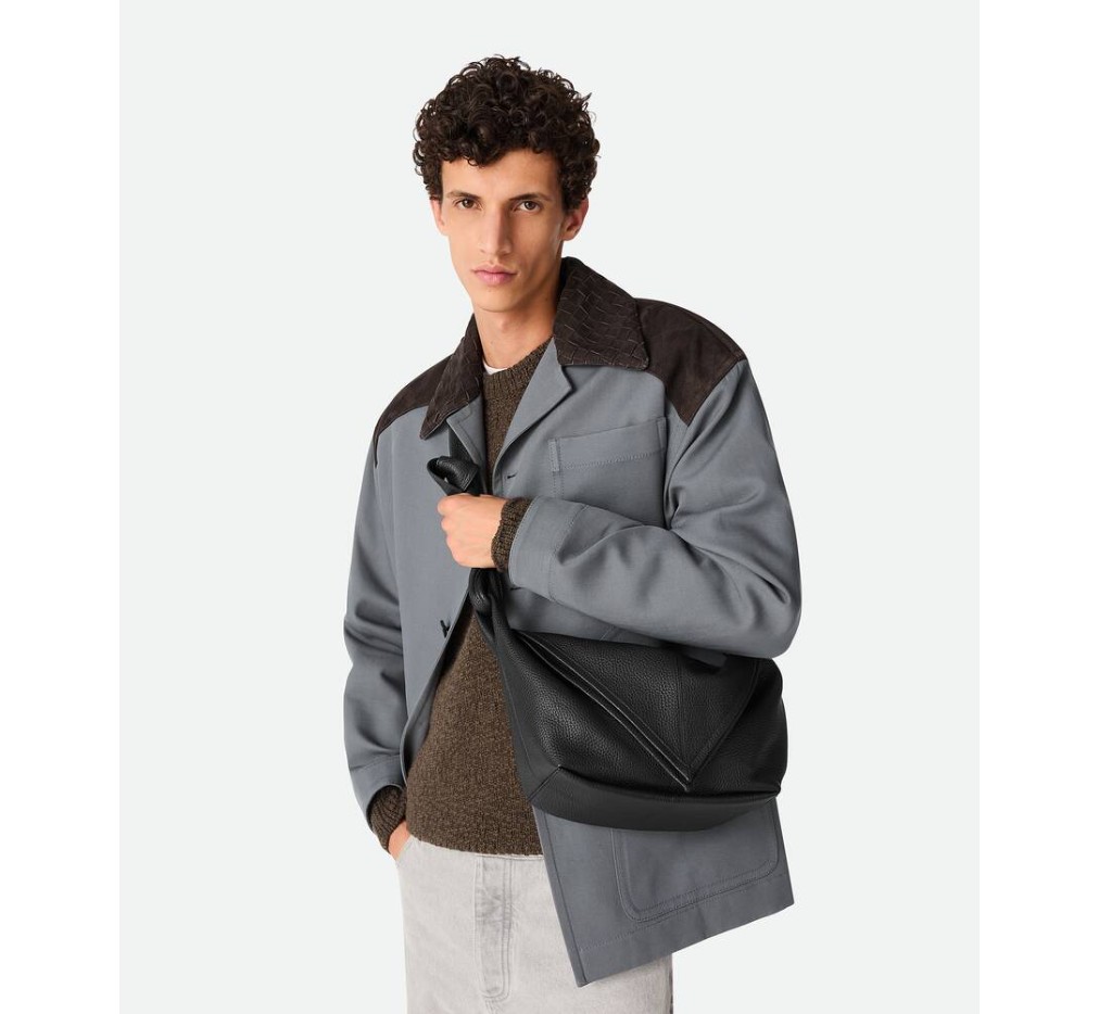 조절 가능한 스트랩과 매듭 디테일이 있는 그레인 송아지 가죽 소재의 숄더백입니다.