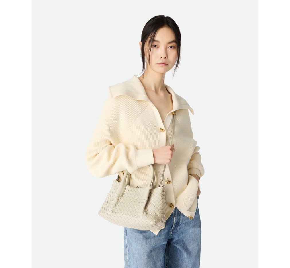 조절 및 분리 가능한 스트랩이 달린 인트레치아토 실크 송아지 가죽 토트백.– 스몰 인트레치아토 실키 송아지 가죽 토트백 (조절 및 탈부착 가능한 스트랩 포함)