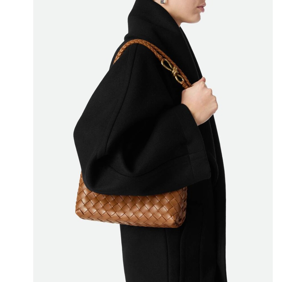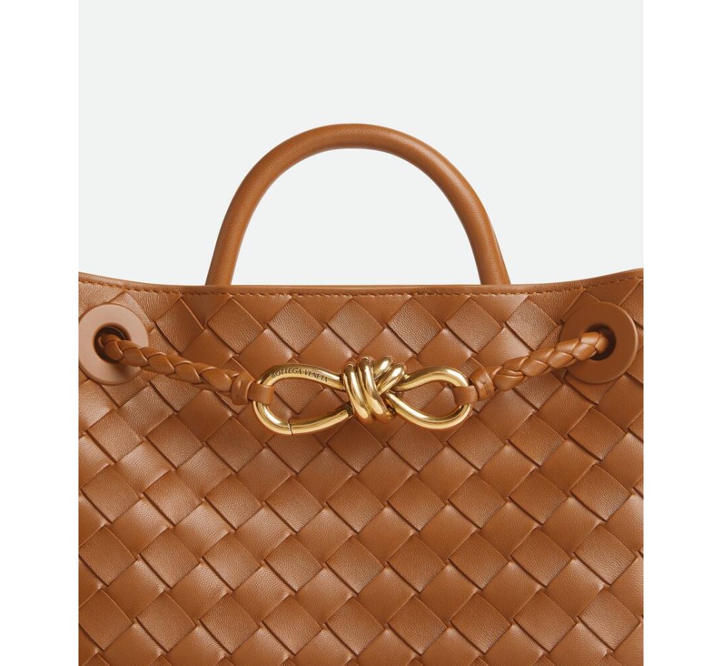 시그니처 매듭 디테일과 슬라이딩 크로스바디 스트랩이 특징인, 부드러운 인트레치아토 가죽 소재의 탑 핸들 백입니다.– 스몰 인트레치아토 가죽 탑 핸들 백 (슬라이딩 크로스바디 스트랩 포함)