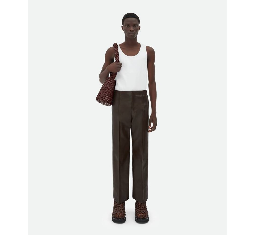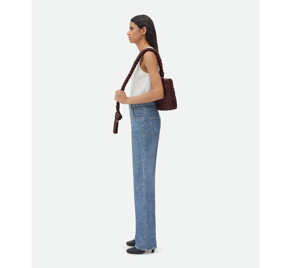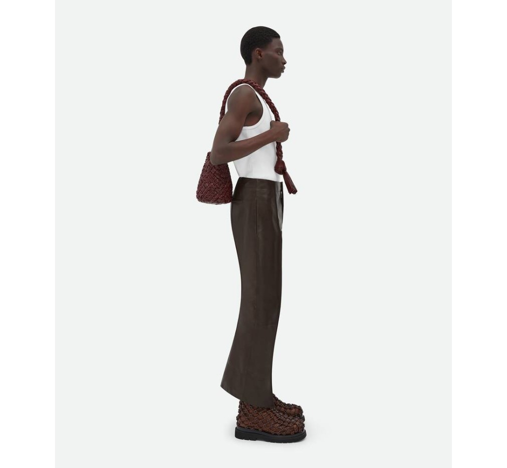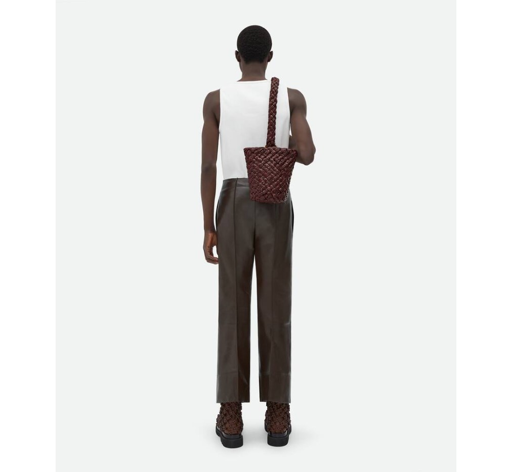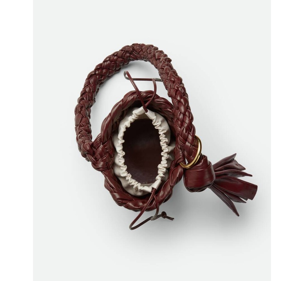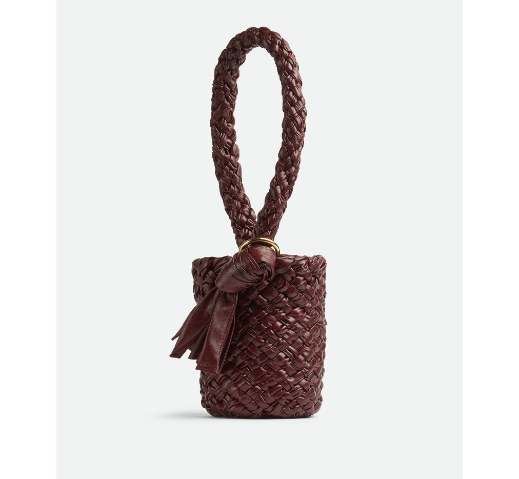풀라드 인트레치오 가죽을 사용하여 바느질 없이 전부 손으로 짠 슬라이딩 숄더 스트랩이 달린 버킷 백입니다.