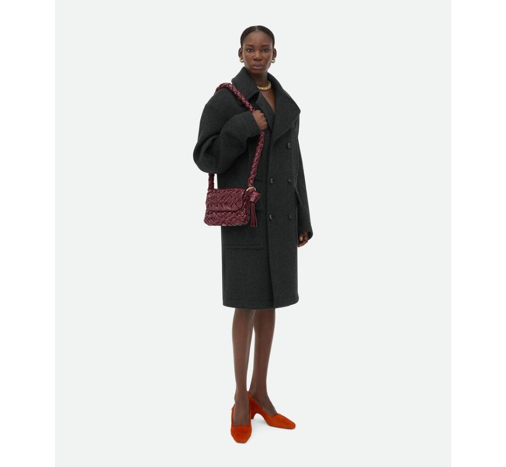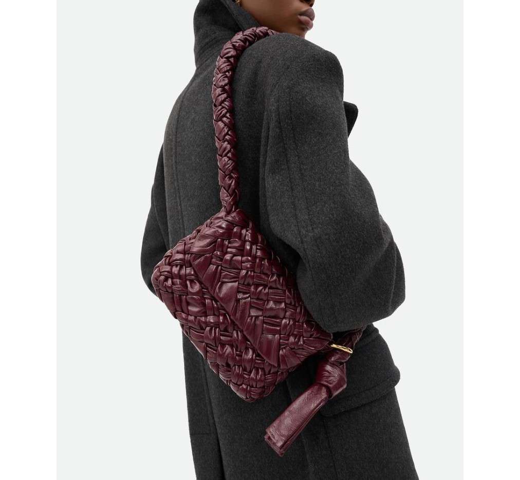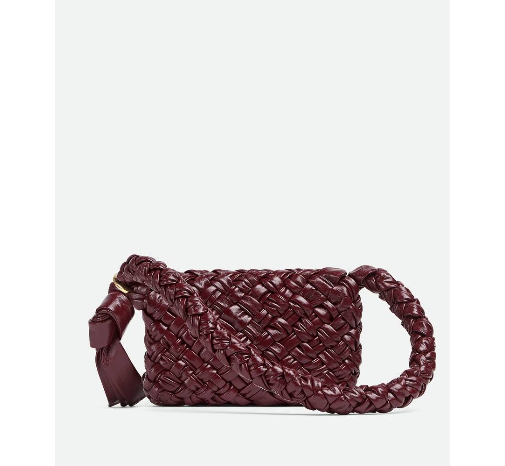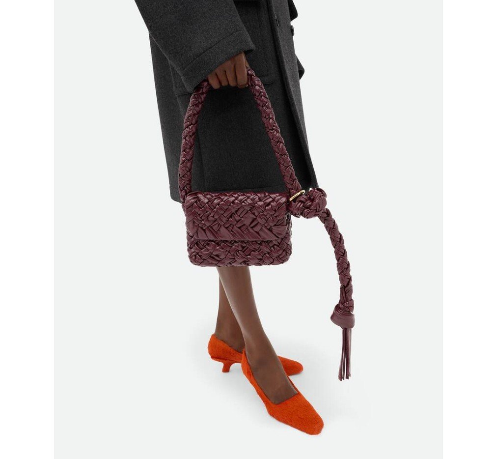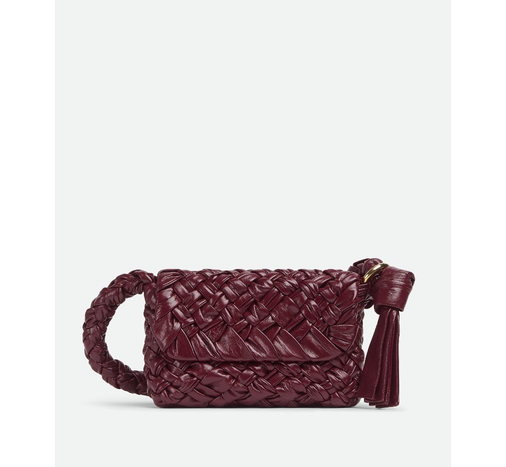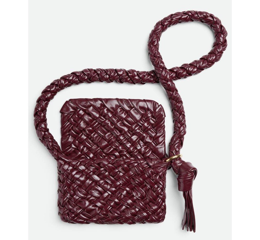 부드러운 풀라드 인트레치오 가죽 소재의 숄더백으로, 슬라이딩 숄더 스트랩, 메탈릭 링, 매듭 디테일이 특징입니다.– 스몰 풀라드 인트레치오 레더 크로스백