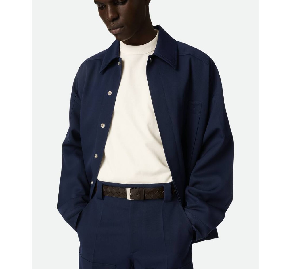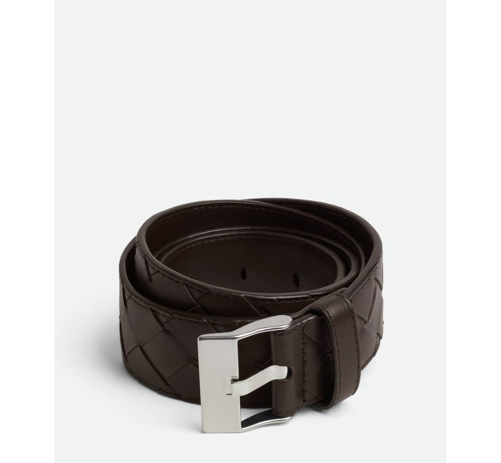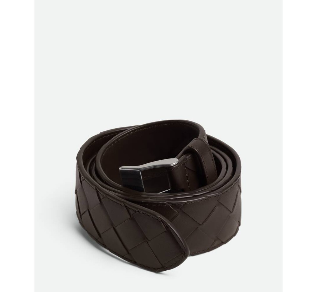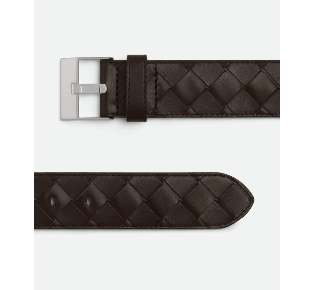 시계 버클이 달린 인트레치아토 송아지 가죽 벨트.– 버클 잠금