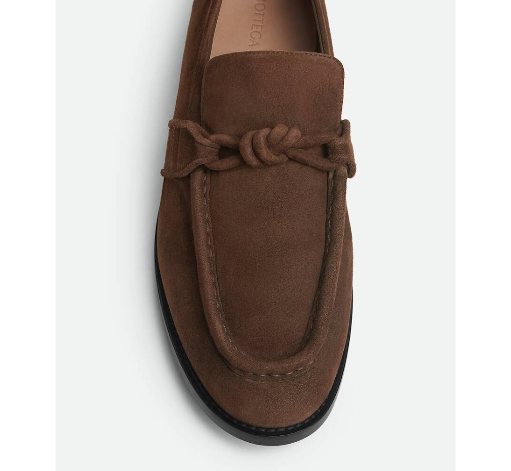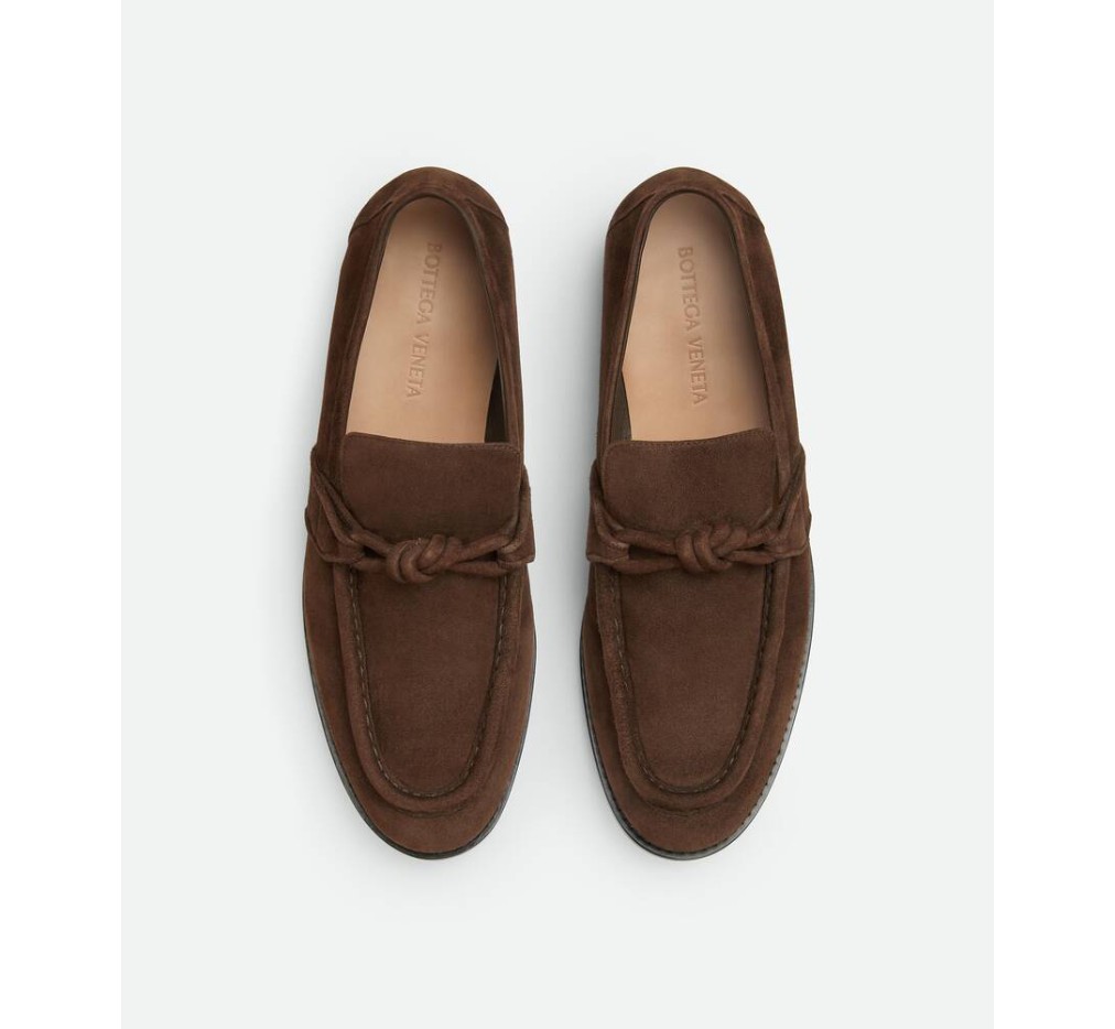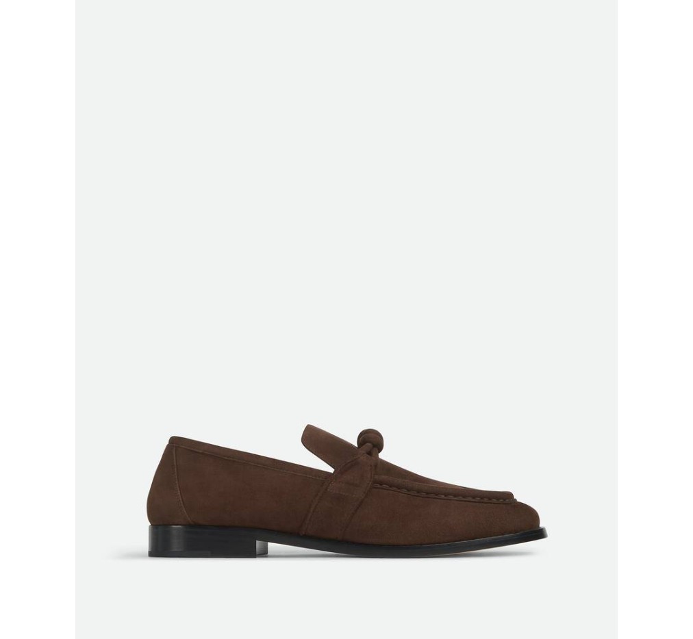 부드러운 스웨이드 소재로 제작되었으며, 시그니처 매듭 디테일이 돋보이는 로퍼입니다.– 스웨이드 로퍼