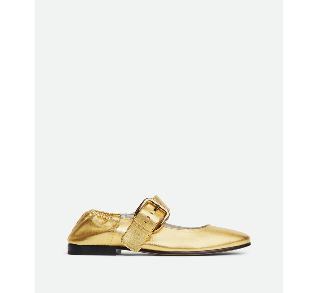 라미네이트 양가죽 소재의 메리제인 발레리나. 뒷면에 인트레치아토 디테일과 버클이 특징입니다.