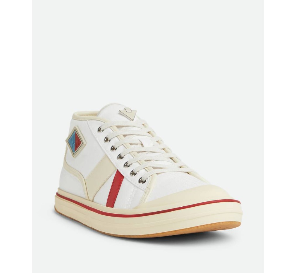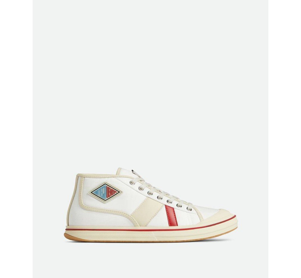 – 가죽 트리밍이 있는 캔버스 미드탑 레이스업 스니커즈