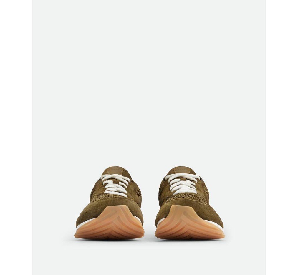 풍화된 스웨이드와 가벼운 기술 메시 소재의 러너 스니커즈.