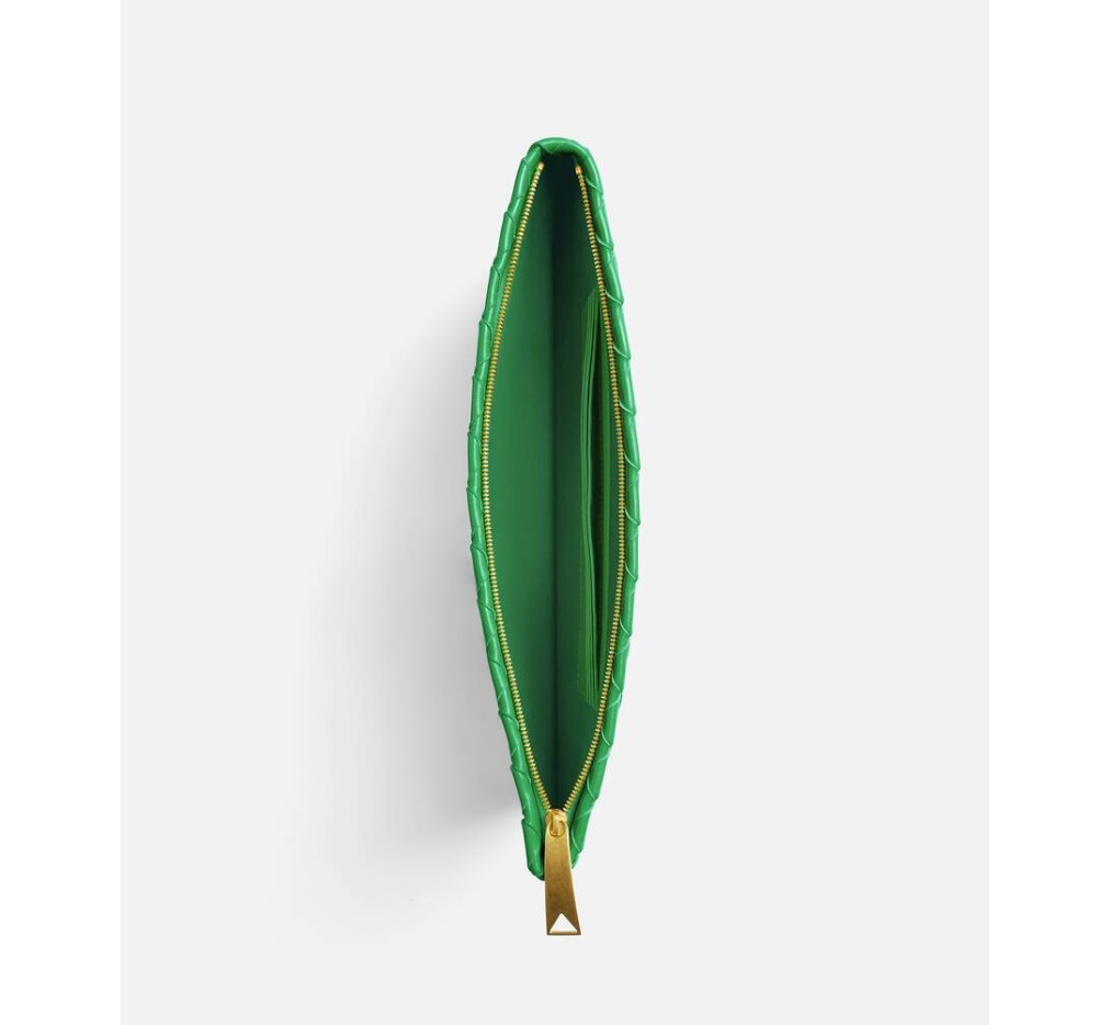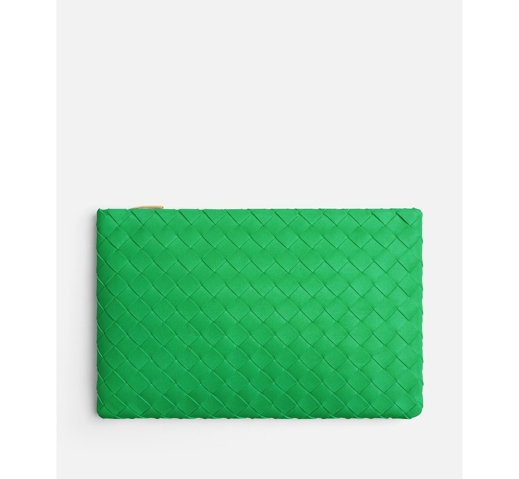 인트레치아토 나파 가죽 소재의 중간 플랫 파우치.