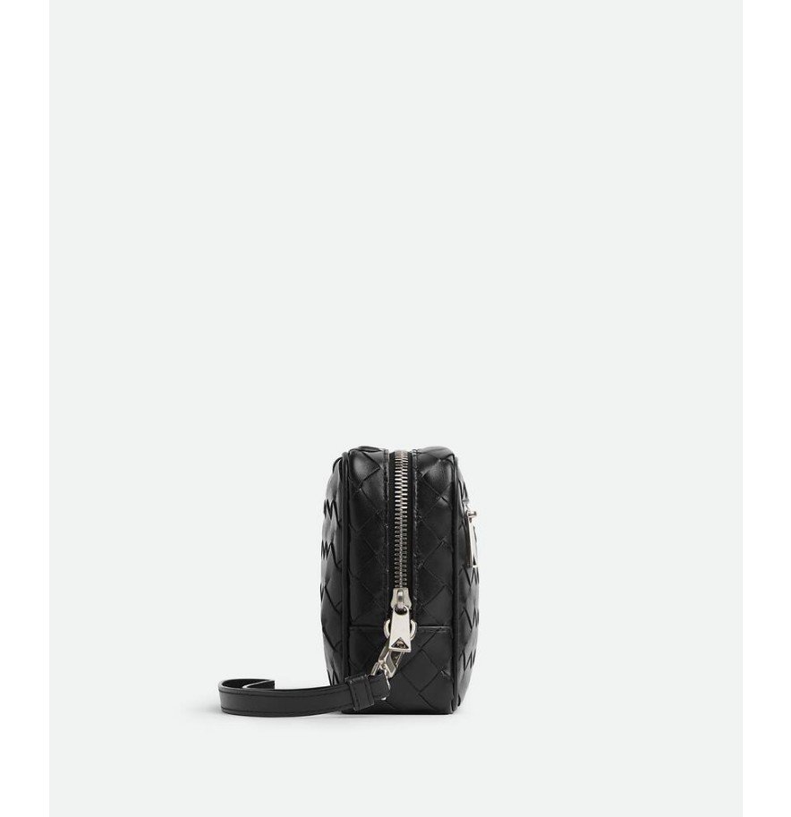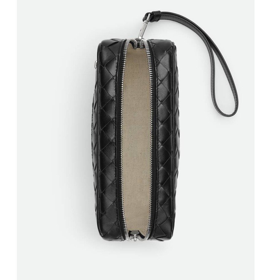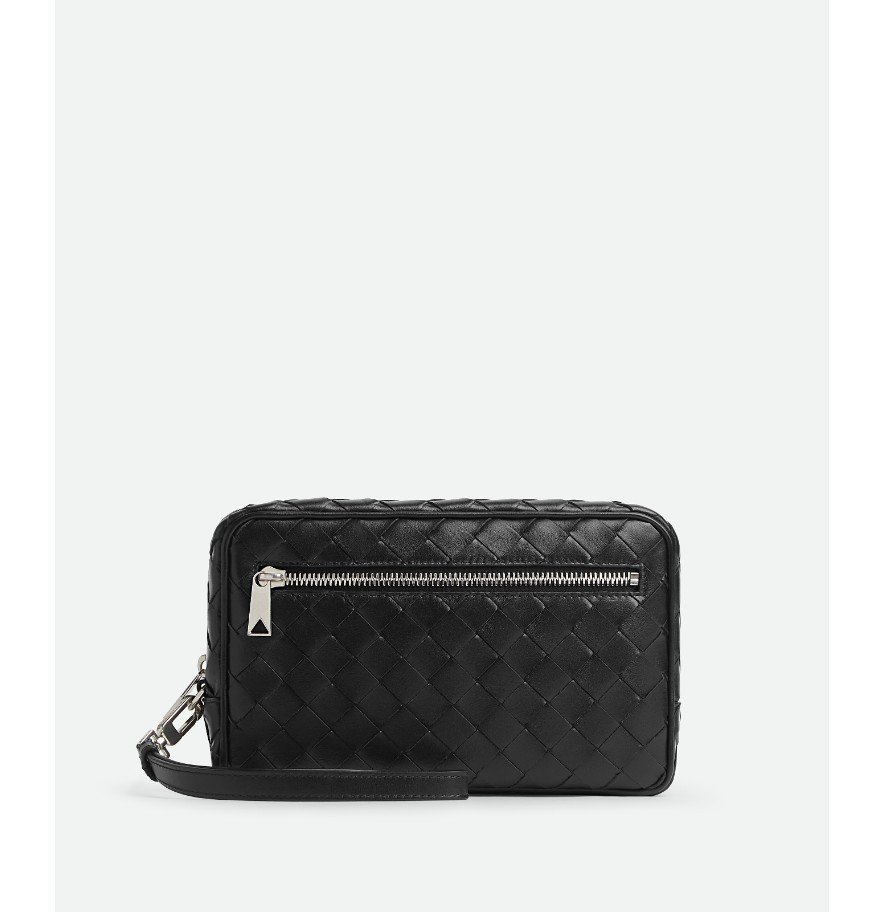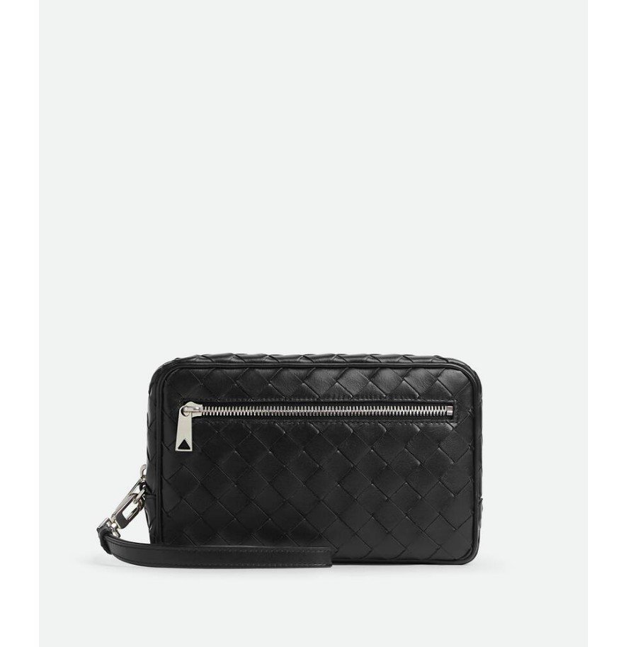 분리형 손목 가방이 달린 작은 인트레치아토 송아지 가죽 파우치.