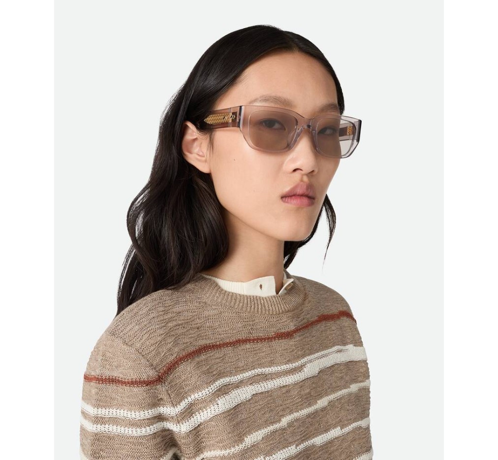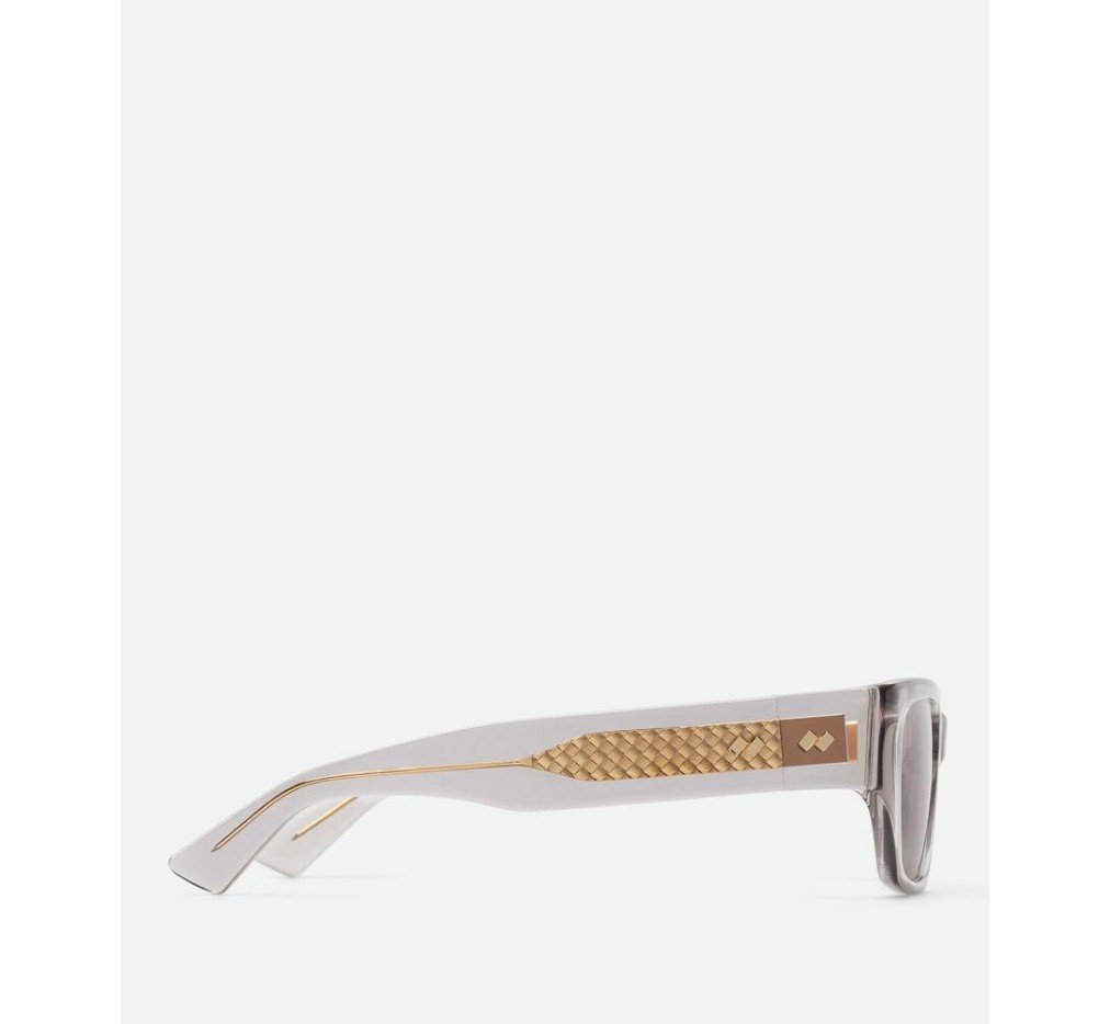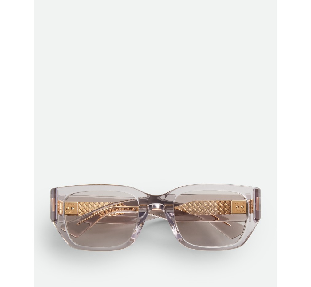 재활용 아세테이트로 제작한 사각형 선글라스로, 금색 마감 디테일과 내부 인트레치아토 패턴이 특징입니다.