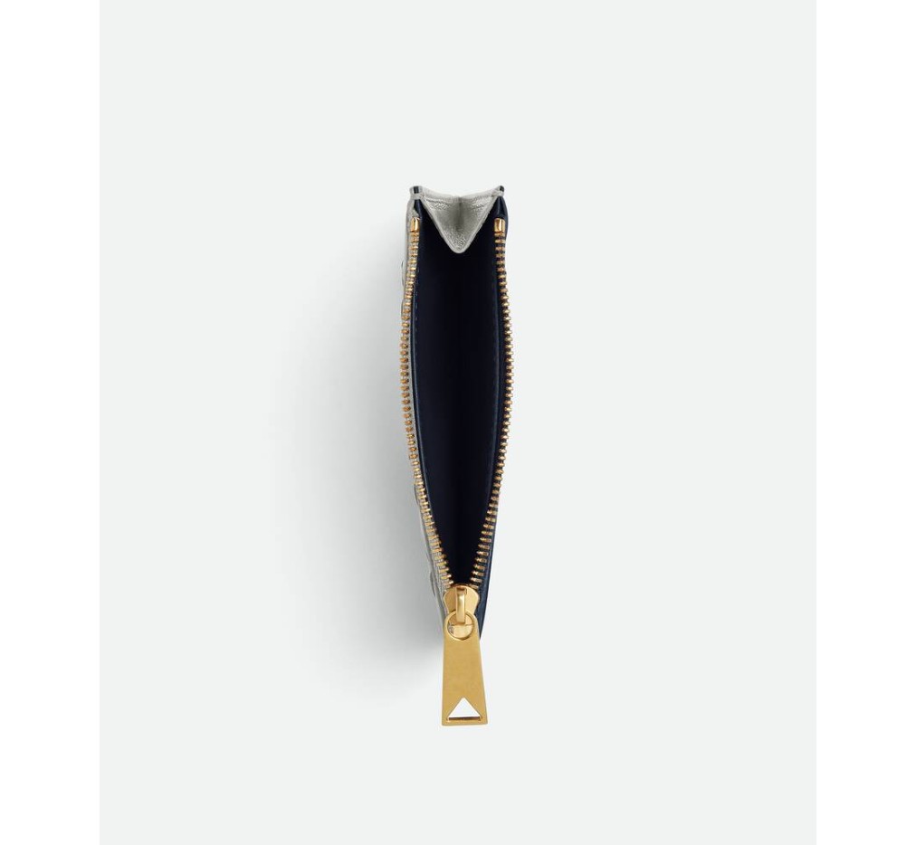 인트레치아토 나파 가죽 소재의 지퍼 카드 케이스, 대조적인 뒷면 디자인.