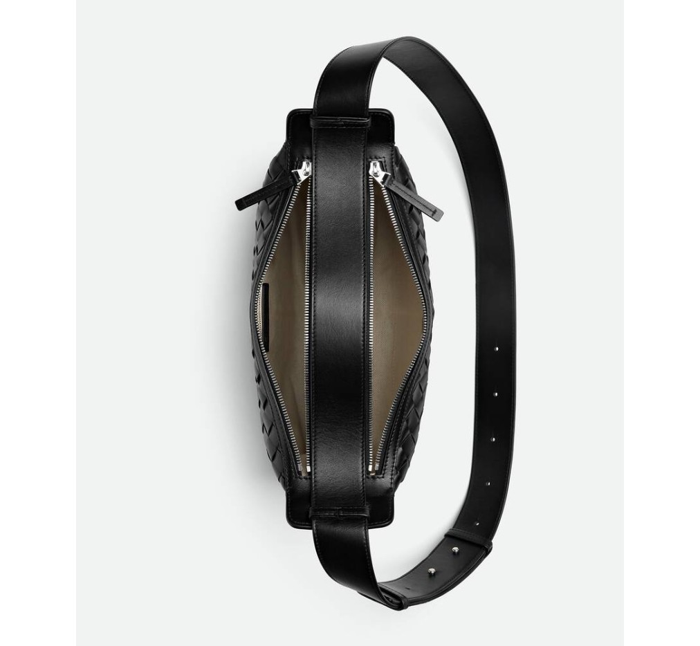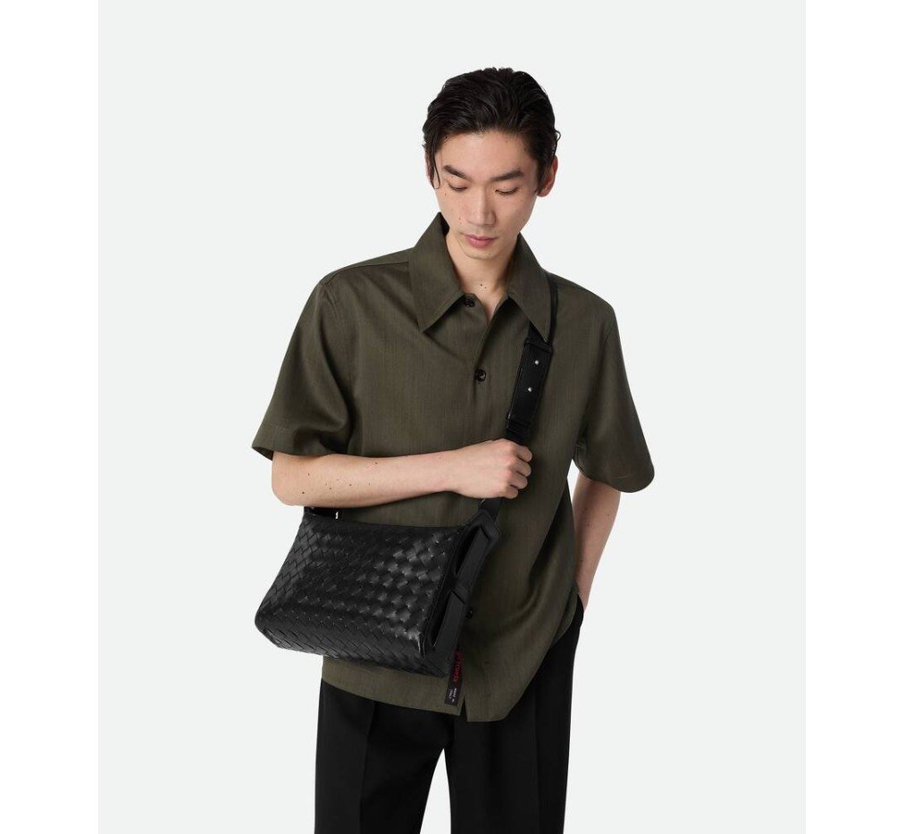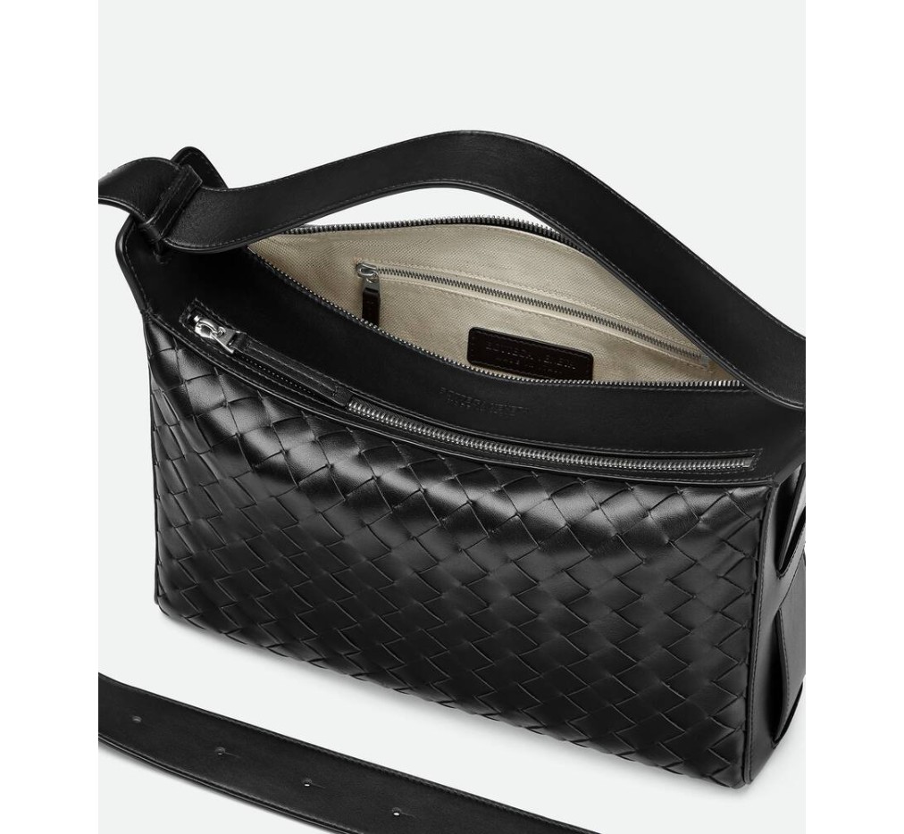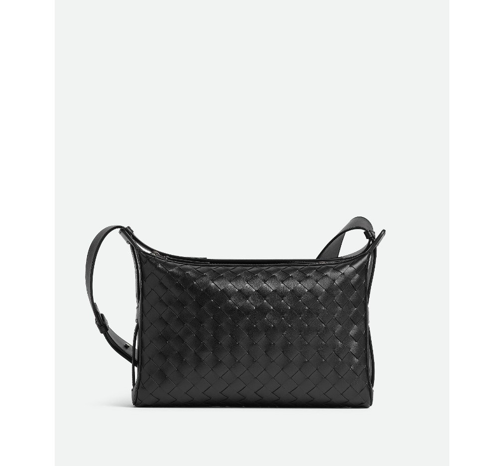 접이식 상단 핸들이 특징인 인트레치아토 가죽 소재의 크로스바디 백입니다.– 접이식 상단 핸들이 달린 인트레치아토 가죽 크로스바디 백