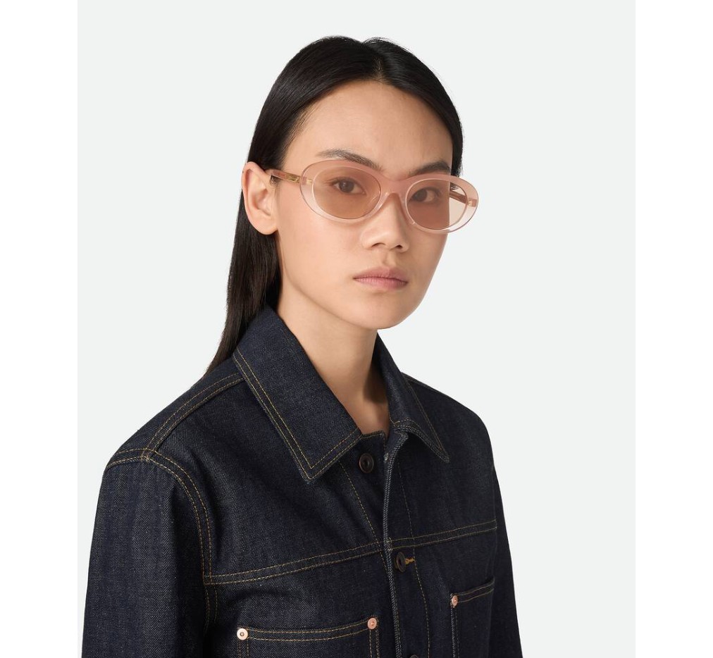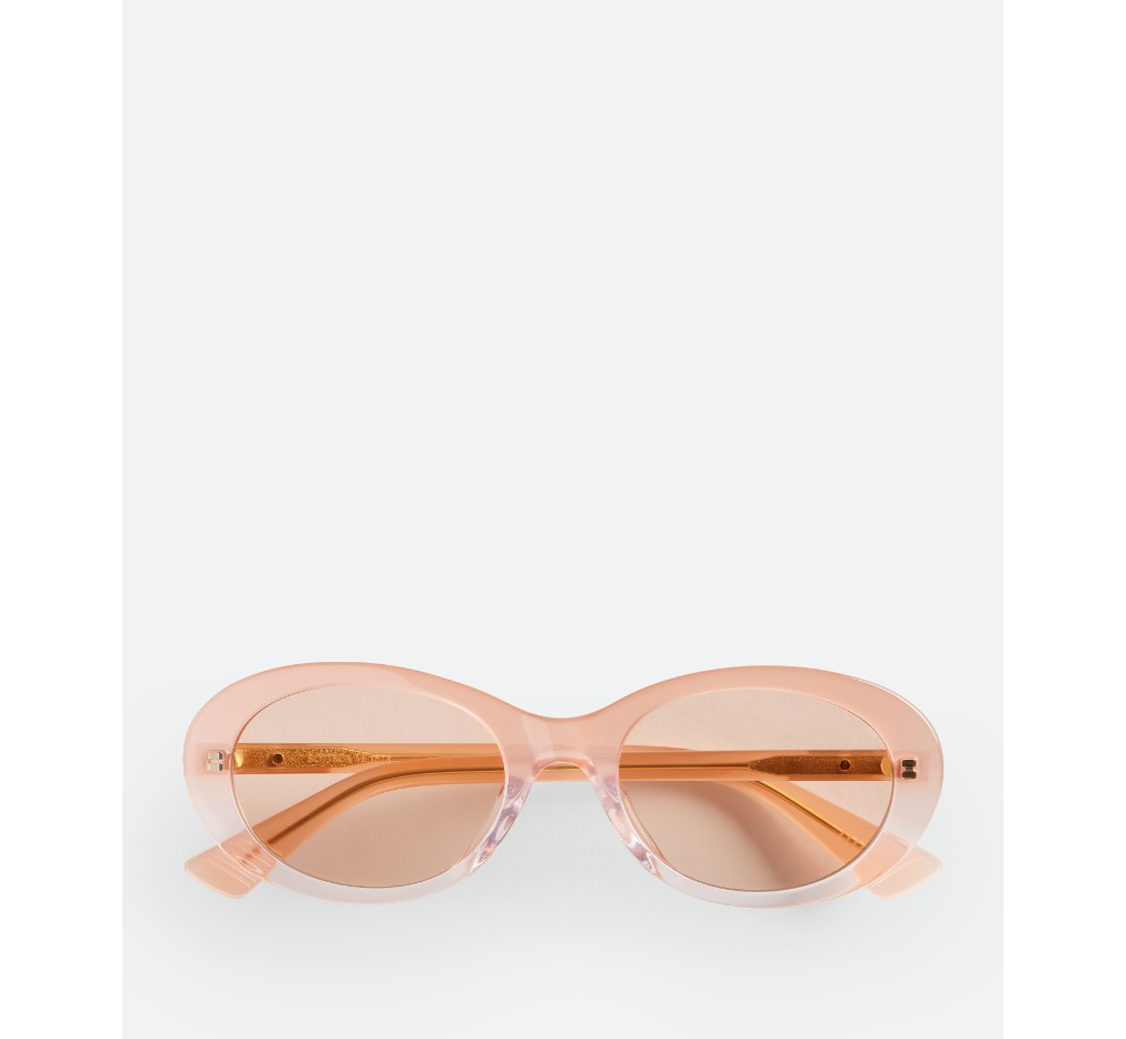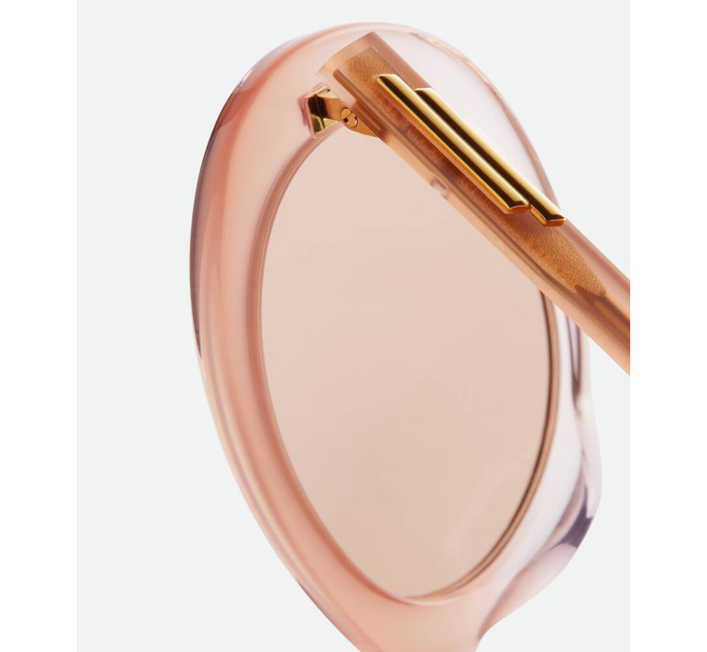 재활용 아세테이트 소재의 타원형 선글라스에 시그니처 골드 마감 리본 디테일이 특징입니다.