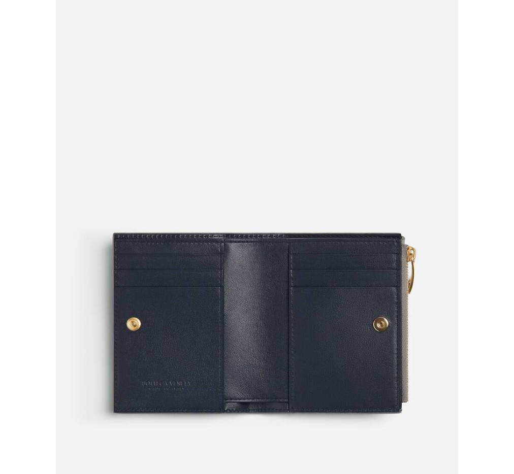 스몰 인트레치아토 나파 가죽 소재의 접이식 지갑, 대조적인 내부 디자인.– 인트레치아토 바이컬러 나파 가죽 지갑