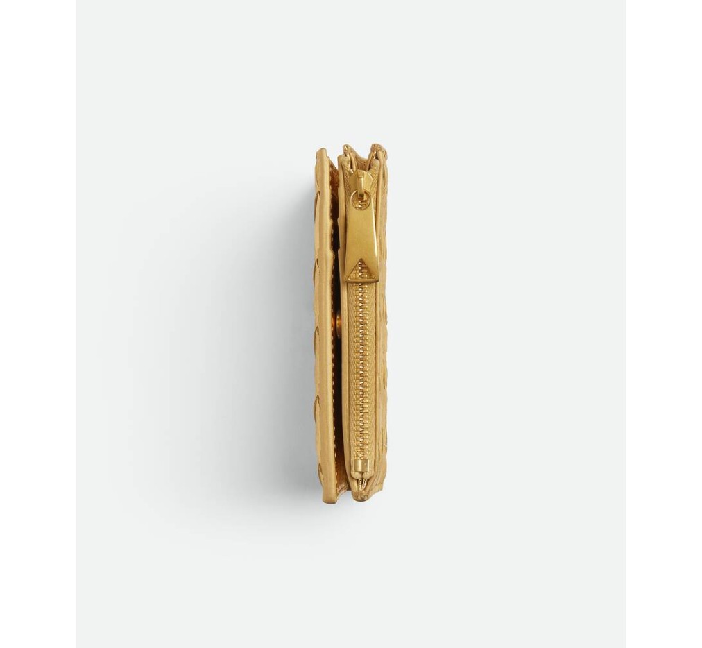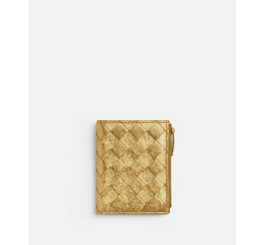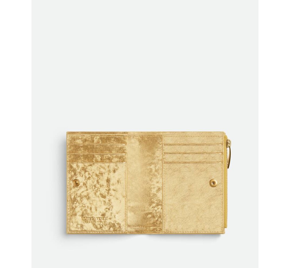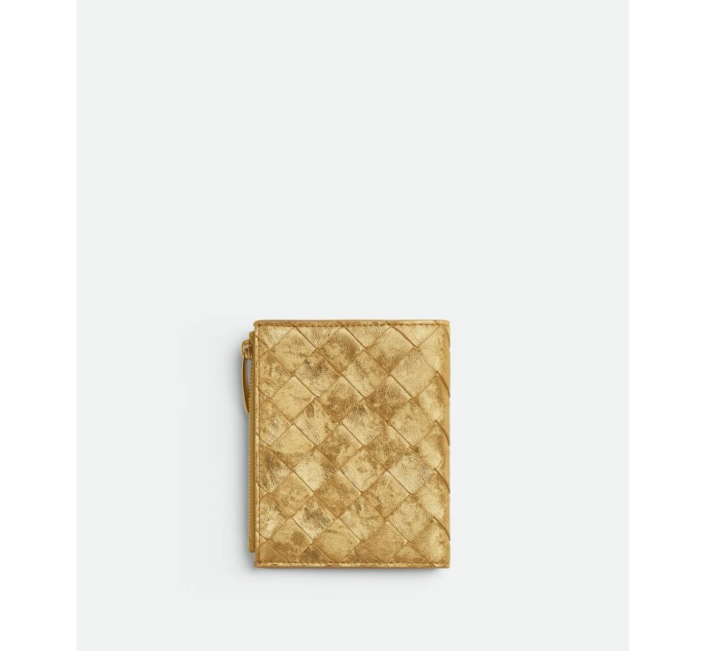 스몰 새틴 마감 인트레치아토 라미네이트 가죽 소재의 접이식 지갑.– 인트레치아토 라미나 새틴 가죽 지갑
