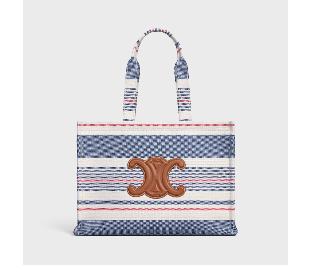셀린느 라지 CABAS THAIS 스트라이프 텍스타일 및 송아지 가죽 196762FYN.14ML