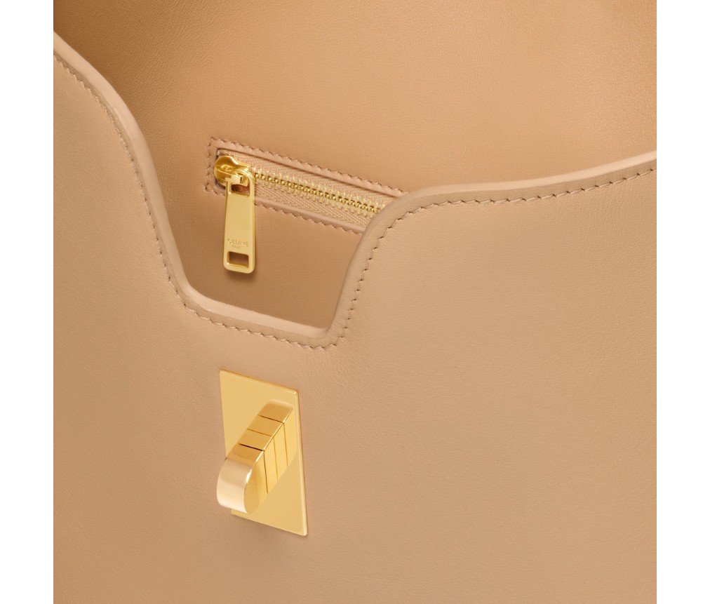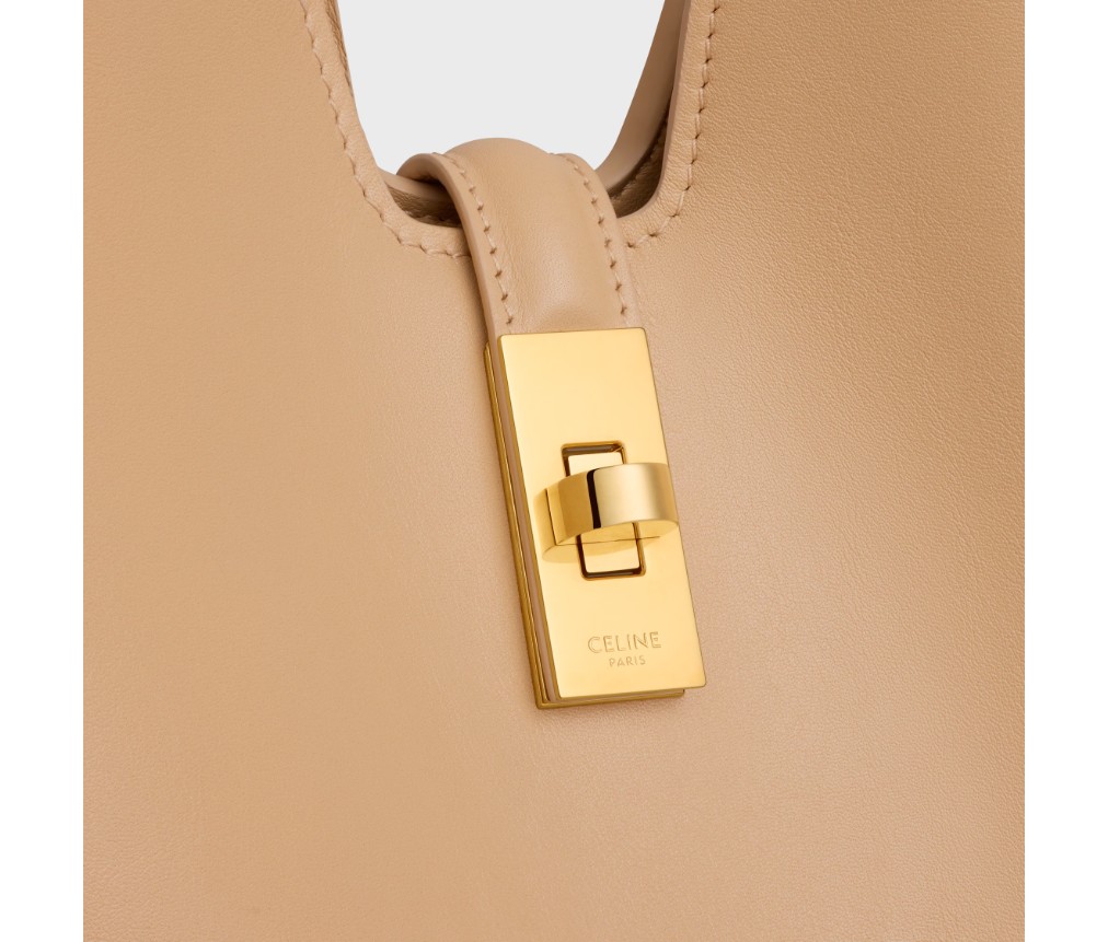 세련된 송아지 가죽은 부드러움과 부드러운 촉감, 그리고 윤기 있는 마감이 조화를 이룹니다. 셀린느의 레더굿 장인정신이 돋보이는 파이핑이 있는 역방향 구조는 라운드 핸드메이드의 매력을 더욱 돋보이게 합니다. 16 소프트 토트백에서 영감을 받은 구조적인 컷팅은 세련되고 독특한 외관을 선사합니다. 가죽 플랩은 셀린느의 상징적인 골드 마감 턴락 잠금장치에 맞춰 접혀 마치 보석처럼 은은하게 빛납니다.