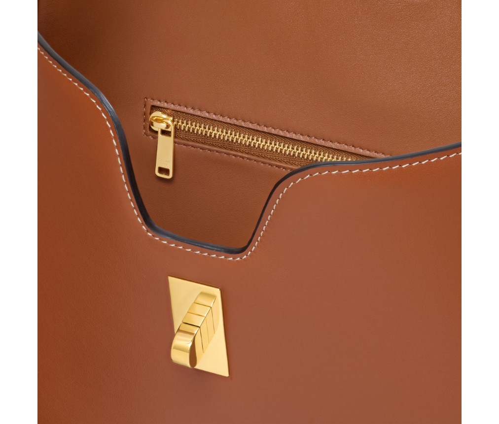 세련된 송아지 가죽은 부드러움과 부드러운 촉감, 그리고 윤기 있는 마감이 조화를 이룹니다. 셀린느의 레더굿 장인정신이 돋보이는 파이핑이 있는 역방향 구조는 라운드 핸드메이드의 매력을 더욱 돋보이게 합니다. 16 소프트 토트백에서 영감을 받은 구조적인 컷팅은 세련되고 독특한 외관을 선사합니다. 가죽 플랩은 셀린느의 상징적인 골드 마감 턴락 잠금장치에 맞춰 접혀 마치 보석처럼 은은하게 빛납니다.