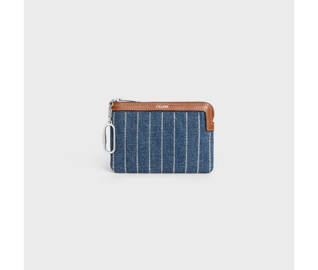 셀린느 스트라스 장식이 있는 스트라이프 데님 동전 지갑 10C662CA2.38NO