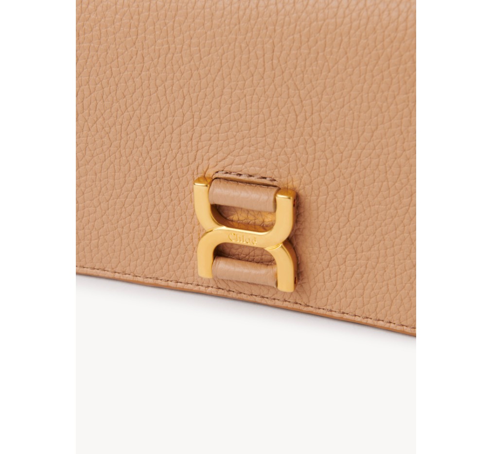 이 Marcie 롱 지갑은 그레인드 송아지 가죽으로 제작되었습니다. 클래식 Marcie 백의 메탈 버클을 보석 로고 형태로 재해석했습니다.이 지갑은 스냅 잠금장치로 열립니다.