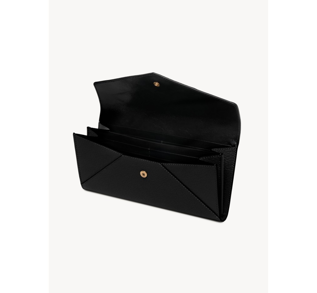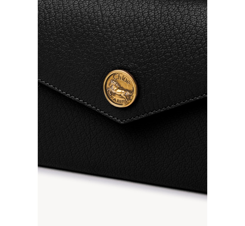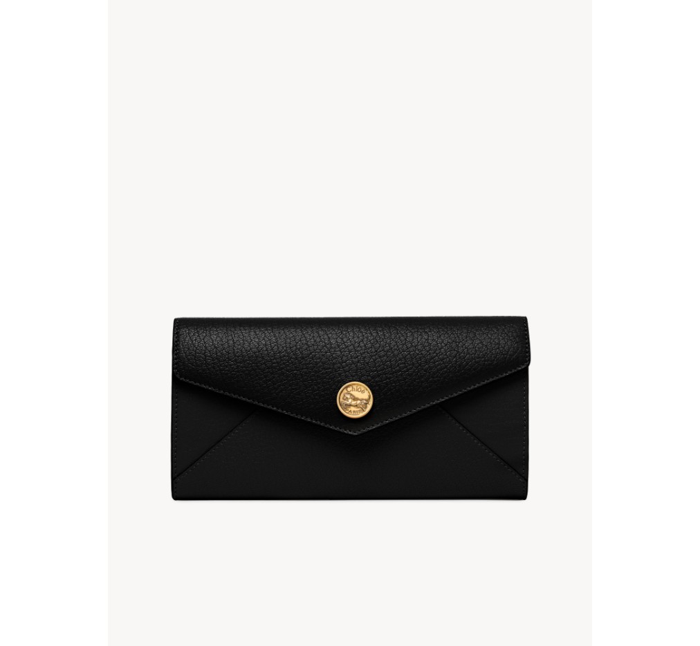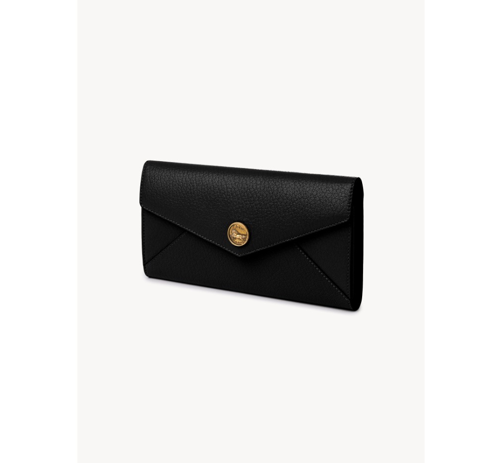 그레인드 염소 가죽으로 제작된 끌로에 롱 지갑은 봉투 모양을 하고 있으며, 플랩에는 시그니처 말 메달리온이 장식되어 있습니다.이 지갑은 스냅 잠금장치로 열립니다.