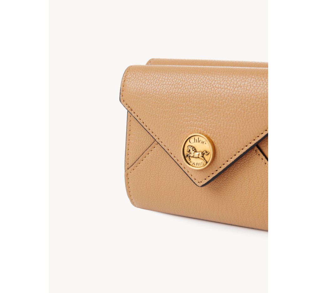 그레인드 염소 가죽으로 제작된 끌로에의 이 작은 삼단 지갑은 봉투 모양을 하고 있으며, 플랩에는 시그니처 말 메달리온이 장식되어 있습니다.이 지갑에는 지폐 수납 공간, 동전 포켓, 카드 슬롯 6개가 포함되어 있습니다.