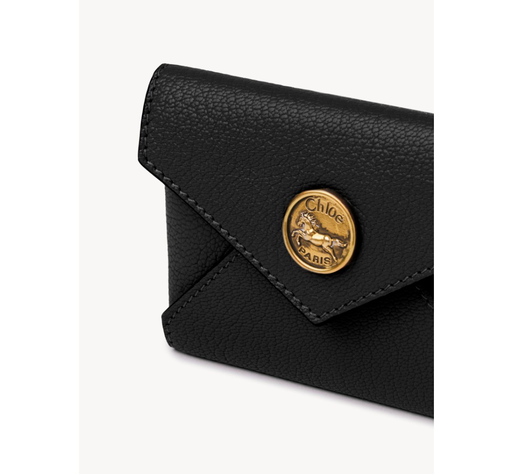 그레인드 염소 가죽으로 제작된 이 끌로에 카드 홀더는 봉투 모양을 하고 있으며, 플랩에는 끌로에의 시그니처 말 메달리온이 장식되어 있습니다.이 카드 홀더는 스냅 걸쇠로 열립니다.