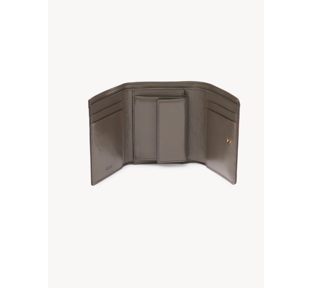 이 아이코닉한 끌로에 스몰 3단 지갑은 광택 있는 송아지 가죽으로 제작되었습니다. 메종의 헤리티지에서 영감을 받은 메탈릭 끌로에 시그니처가 특징이며, 플랩이 달린 동전 포켓이 내부를 완성합니다.이 지갑은 스냅 잠금장치로 열립니다.