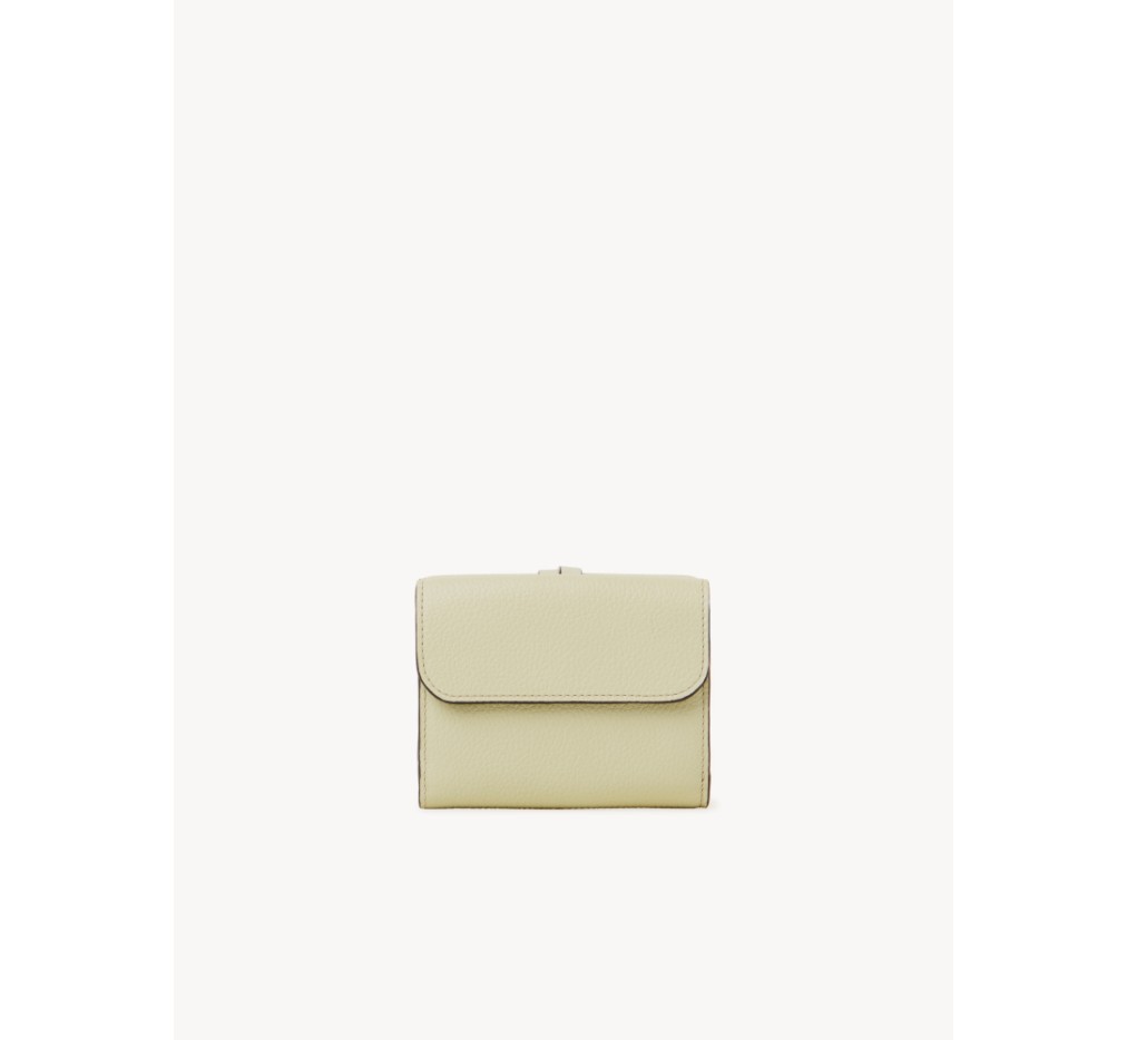 이 작은 3단 알파벳 지갑은 그레인드 송아지 가죽으로 제작되었습니다. 부드러운 가죽 스트랩에 옅은 골드 링이 장식되어 있으며, 같은 라인의 레터 참 장식으로 개인 맞춤 제작이 가능합니다.이 지갑은 스냅 잠금장치로 열립니다.