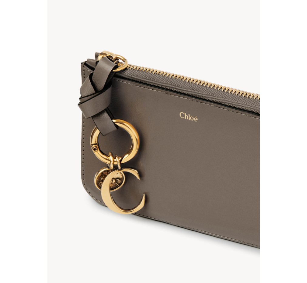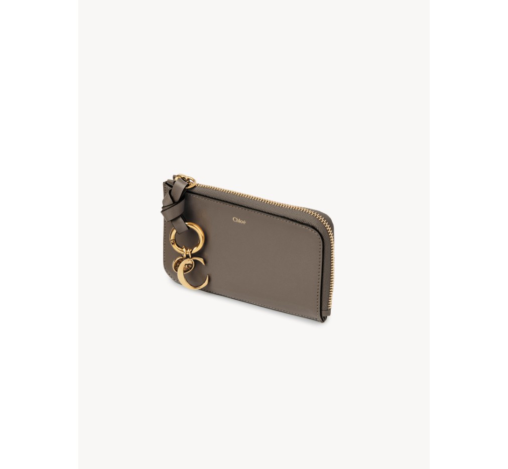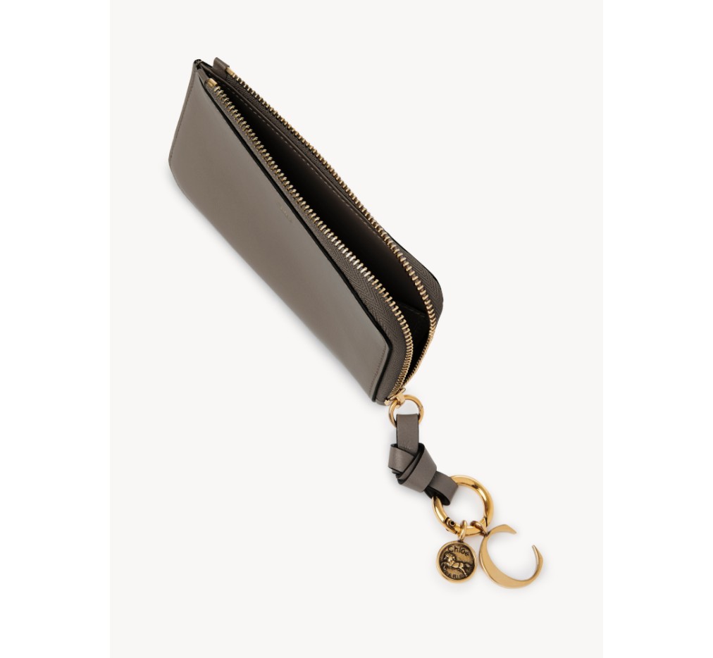 이 알파벳 카드 & 동전 홀더는 광택 있는 송아지 가죽으로 제작되었습니다. 가죽 스트랩에 골드 톤 링이 장식되어 있으며, 해당 라인의 참 장식으로 나만의 개성을 더할 수 있습니다.이 지갑은 지퍼로 열립니다.