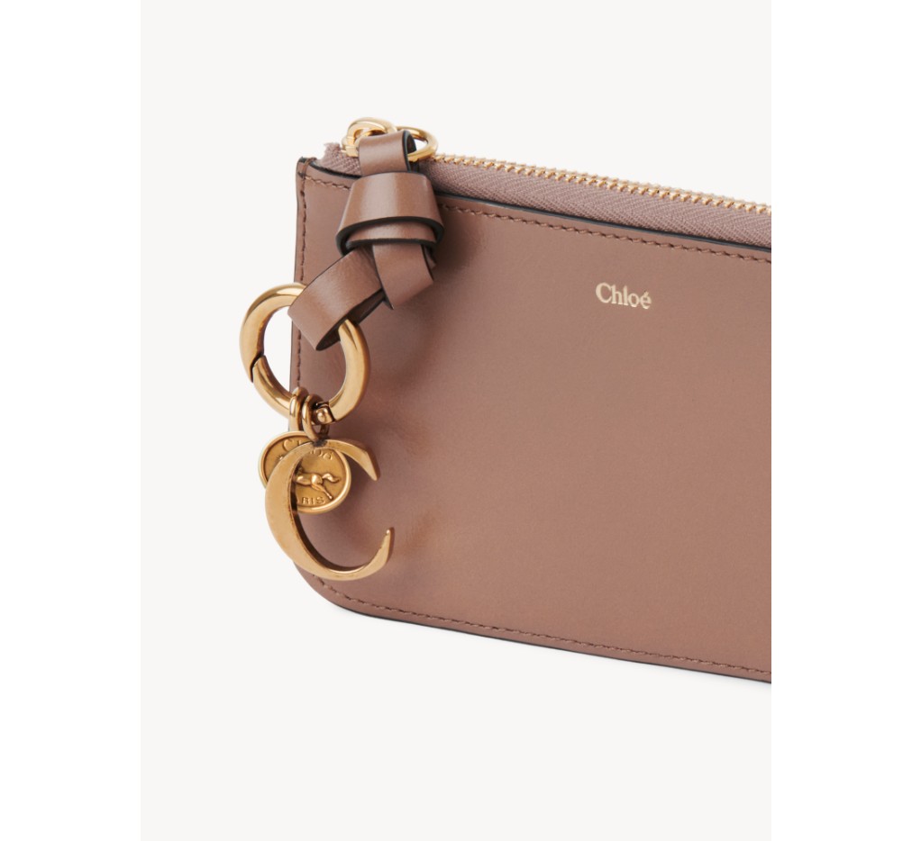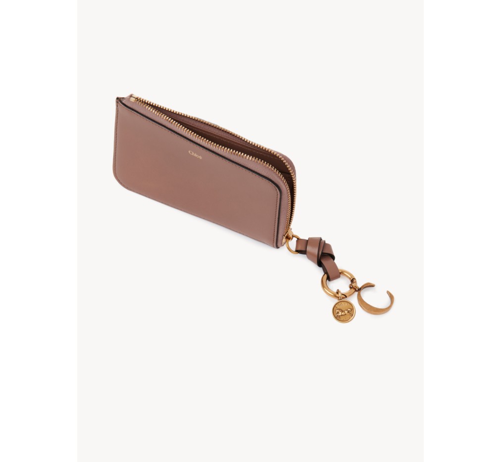 이 알파벳 카드 & 동전 홀더는 광택 있는 송아지 가죽으로 제작되었습니다. 가죽 스트랩에 골드 링이 장식되어 있으며, 해당 라인의 참 장식으로 개인 맞춤 제작이 가능합니다.이 지갑은 지퍼로 열립니다.