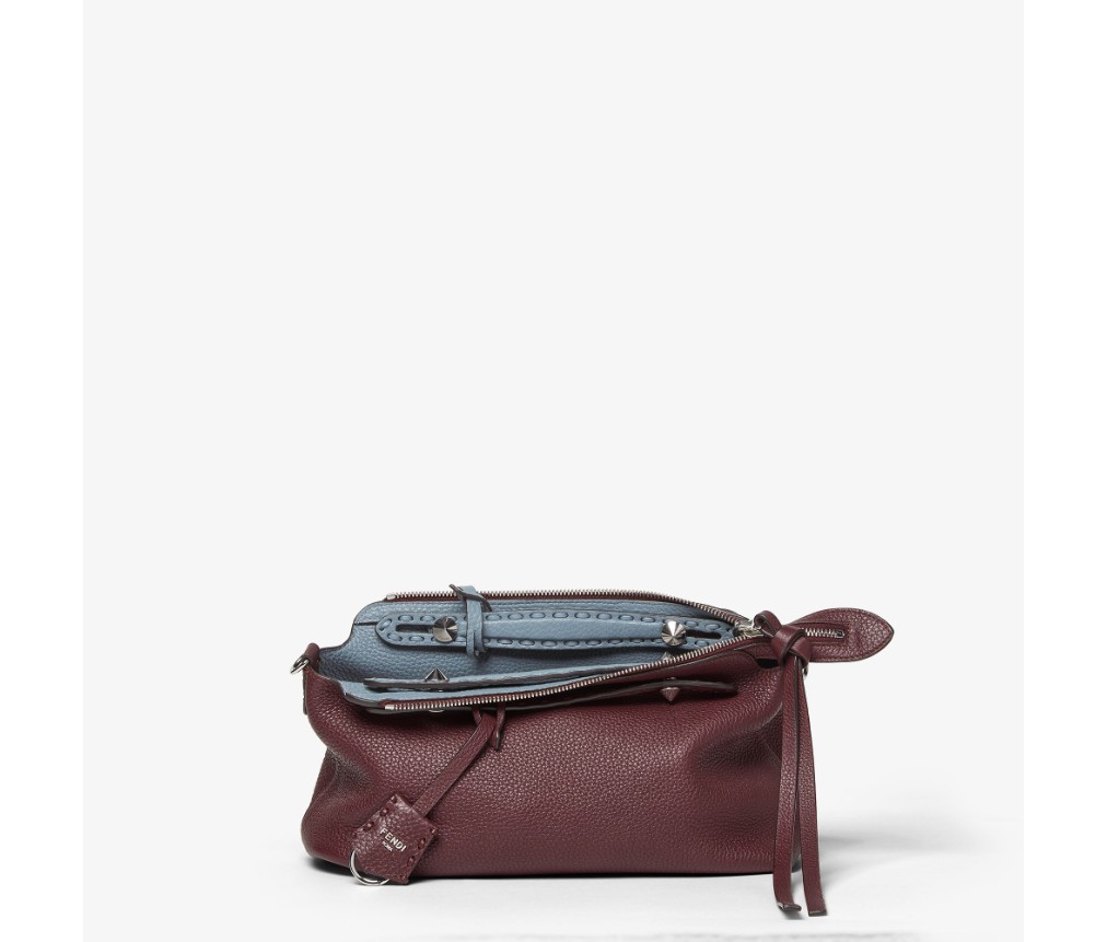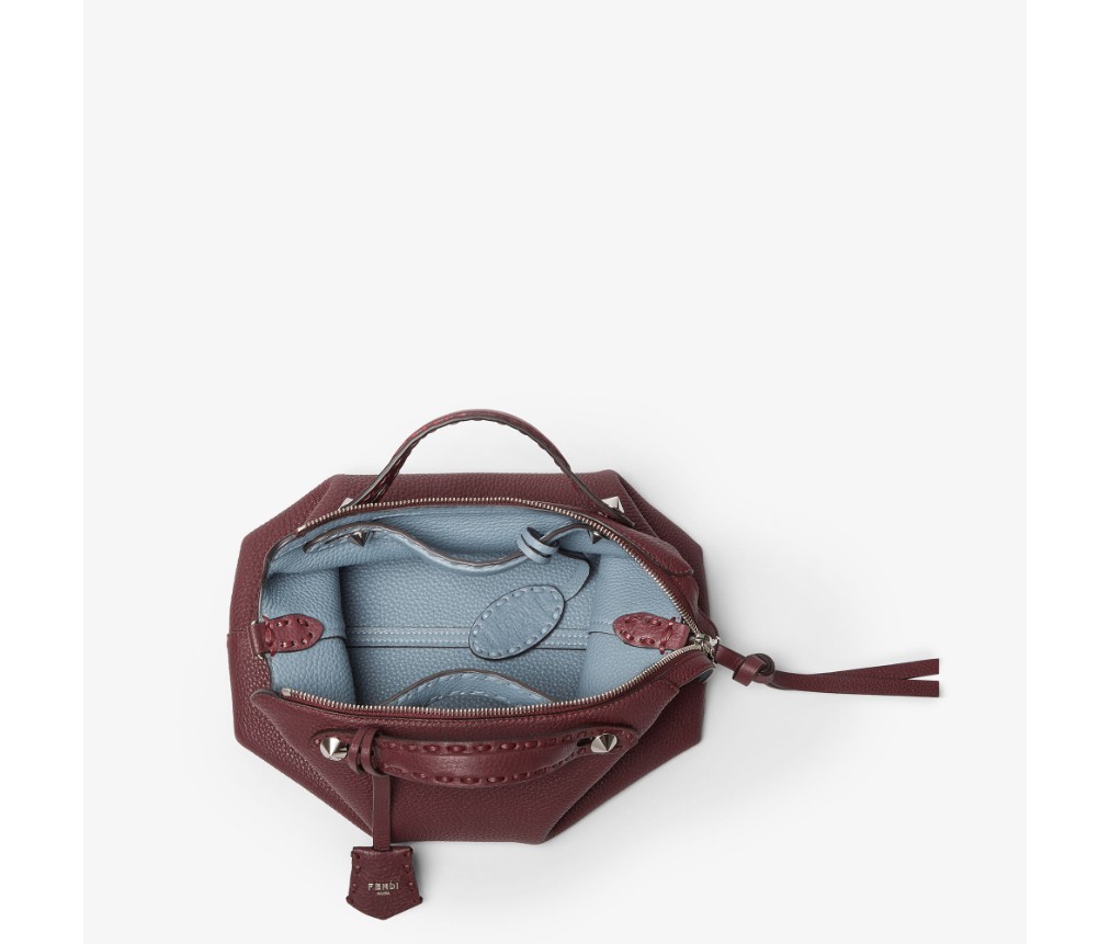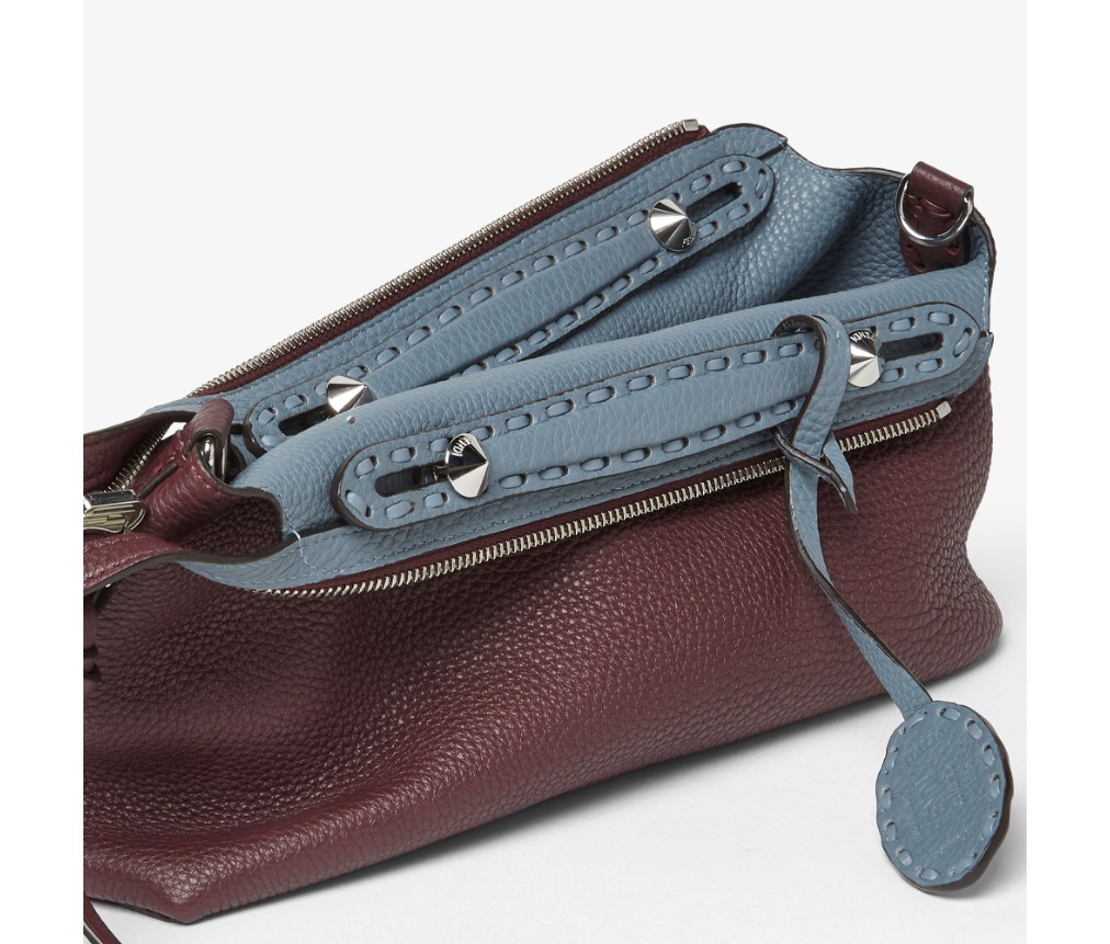 양면 디자인은 금속을 사용하지 않는 무두질 공정으로 제작된 독특한 천연 그레인 가죽인 쿠오이오 로마노 송아지 가죽으로 제작되었습니다. 한 면은 버건디, 다른 한 면은 머큐리 블루 컬러로, 펜디 특유의 이중성을 세련되게 표현하며 시대를 초월하는 장인 정신과 현대적인 창의성을 결합했습니다.