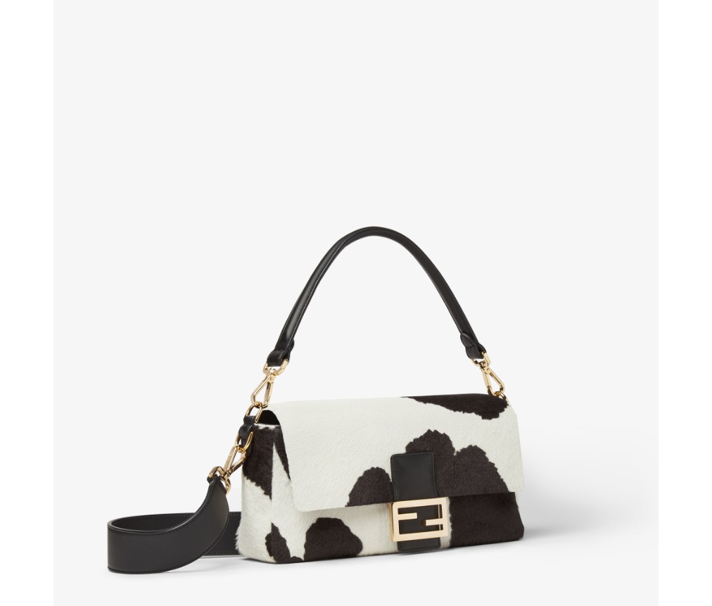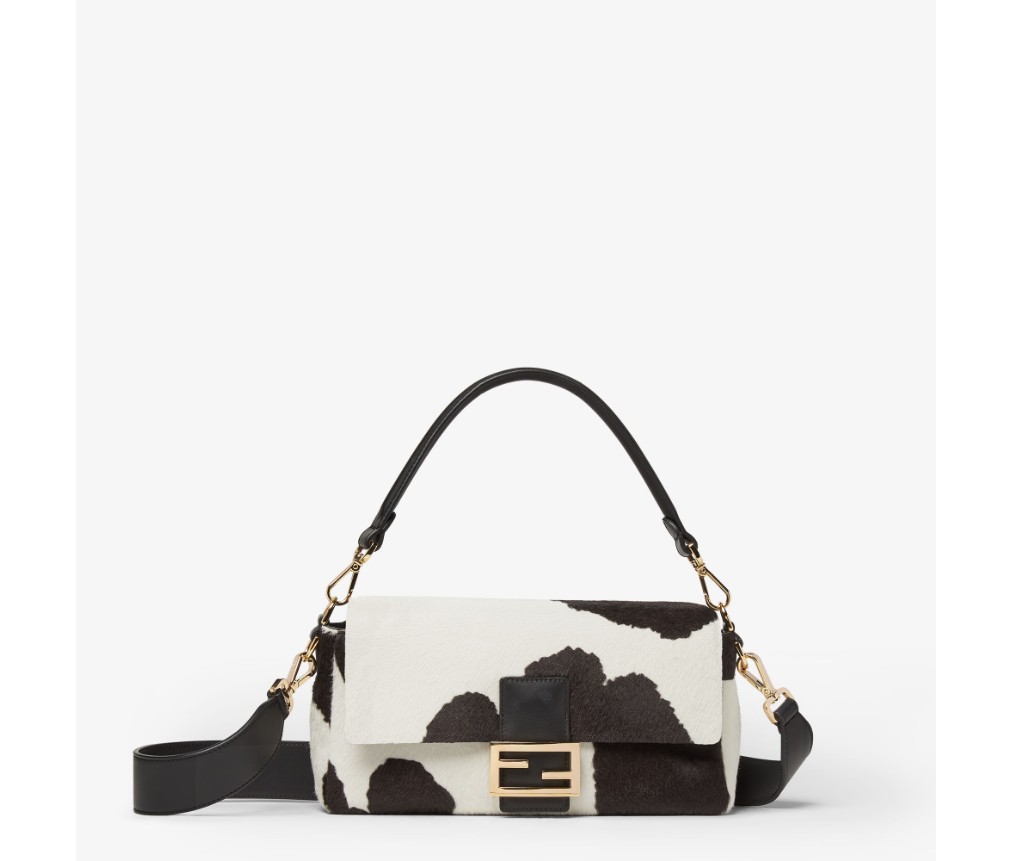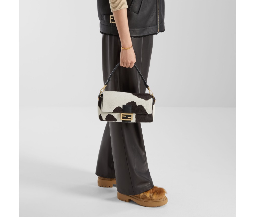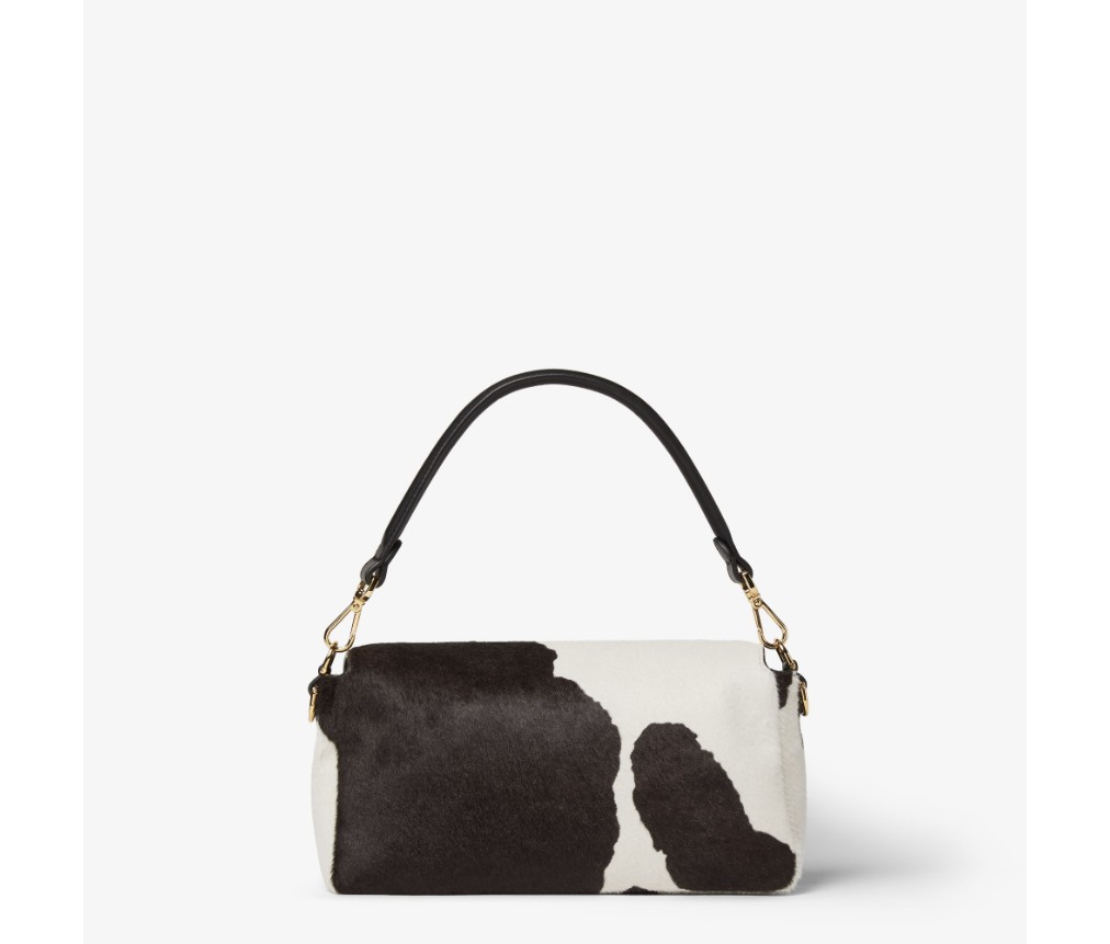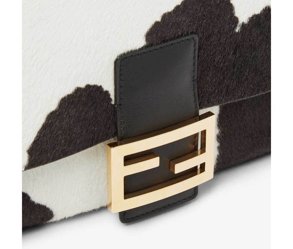 진한 갈색과 흰색 동물 프린트가 있는 카발리노 송아지 가죽으로 제작되었습니다. FF 클래스프로 장식되었습니다.
