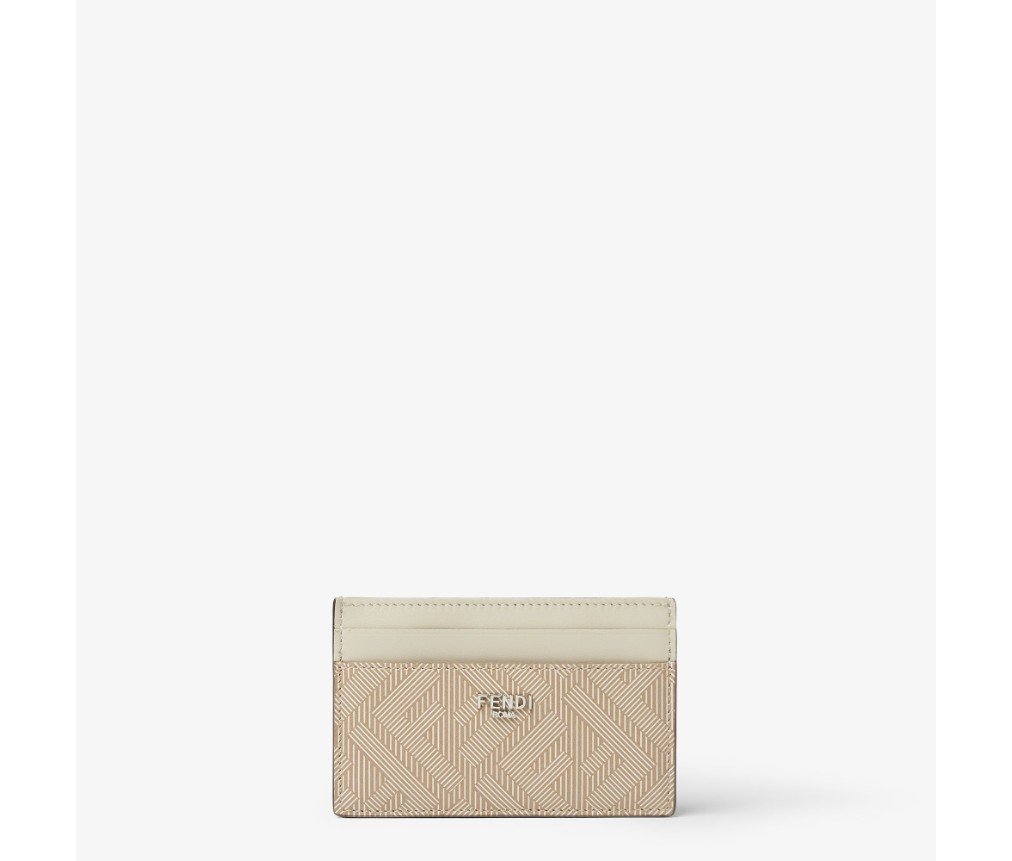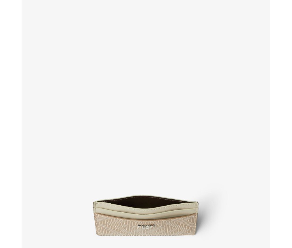 베이지색 펜디 섀도우 가죽 소재에 화이트 FF 모티프가 프린트된 카드 홀더입니다. 오프화이트 가죽 디테일. 팔라듐 마감의 메탈 펜디 로고.