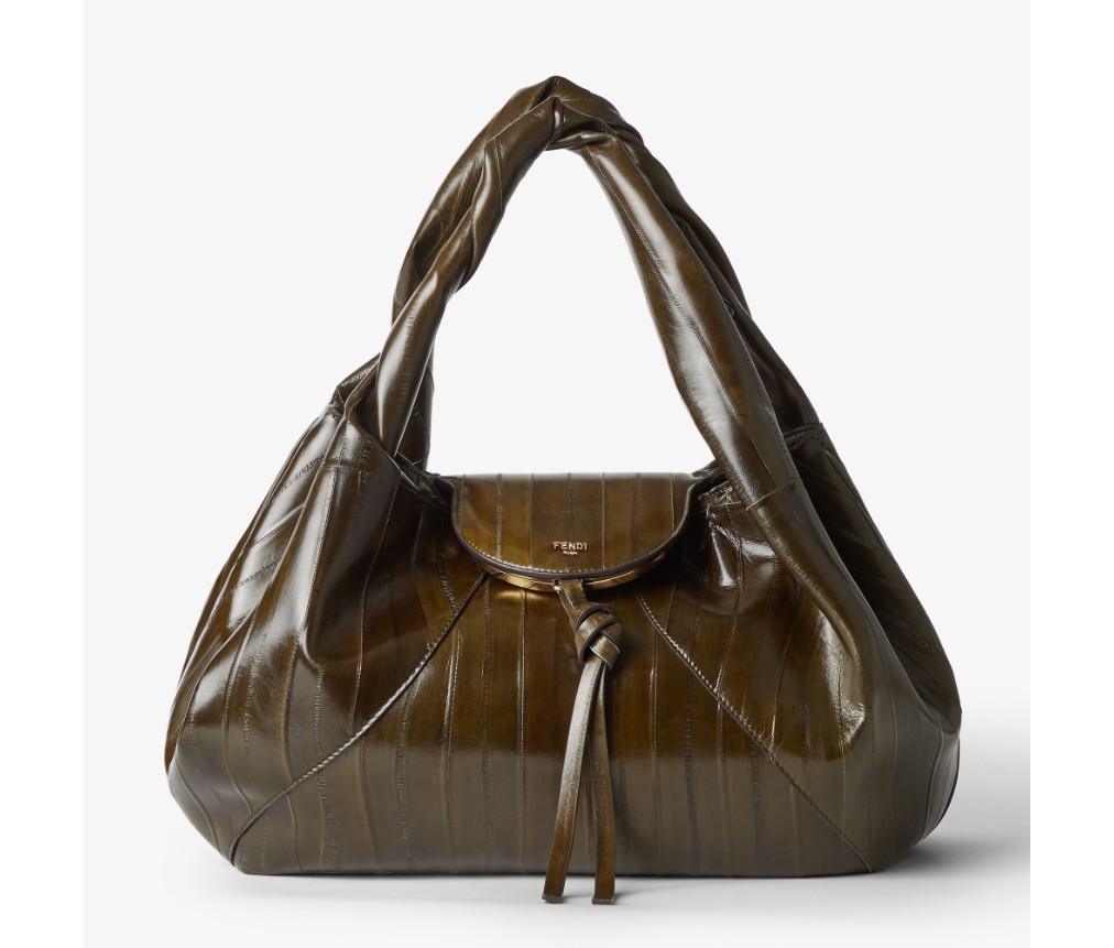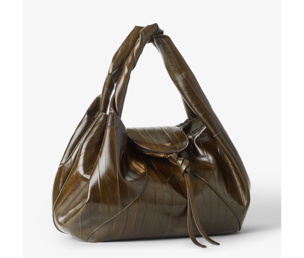 라지 펜디 스파이 백은 2005년 봄/여름 패션쇼에서 선보인 펜디의 유명 IT 백을 현대적으로 재해석한 제품으로, 독특하고 독보적인 디자인으로 시선을 사로잡습니다. 이름은 플랩에 숨겨진 시크릿 포켓을 비롯한 가방의 특징에서 영감을 받았으며, 스몰 버튼으로 열 수 있습니다. 정교한 장인정신을 보여주는 이 백은 실루엣을 더욱 돋보이게 하는 독특한 트위스트 핸들이 특징입니다.
