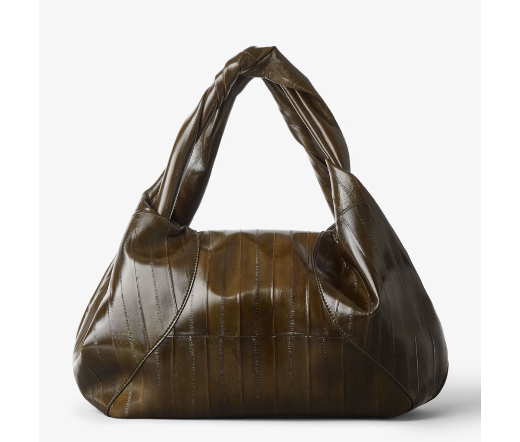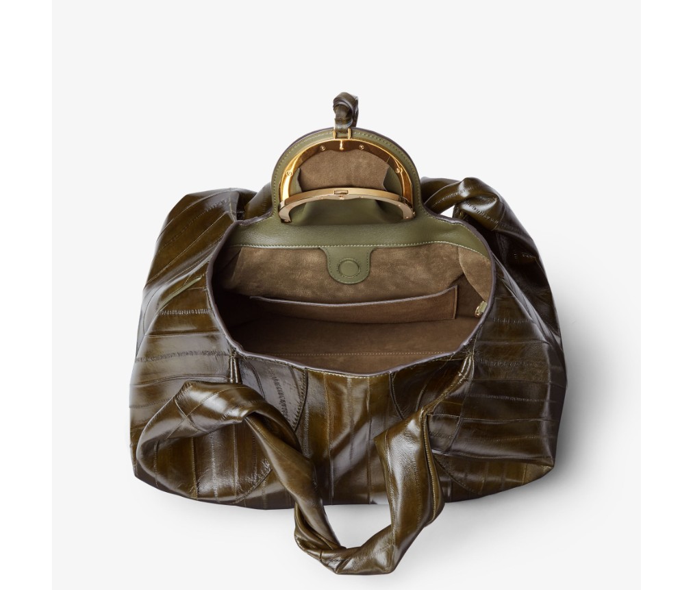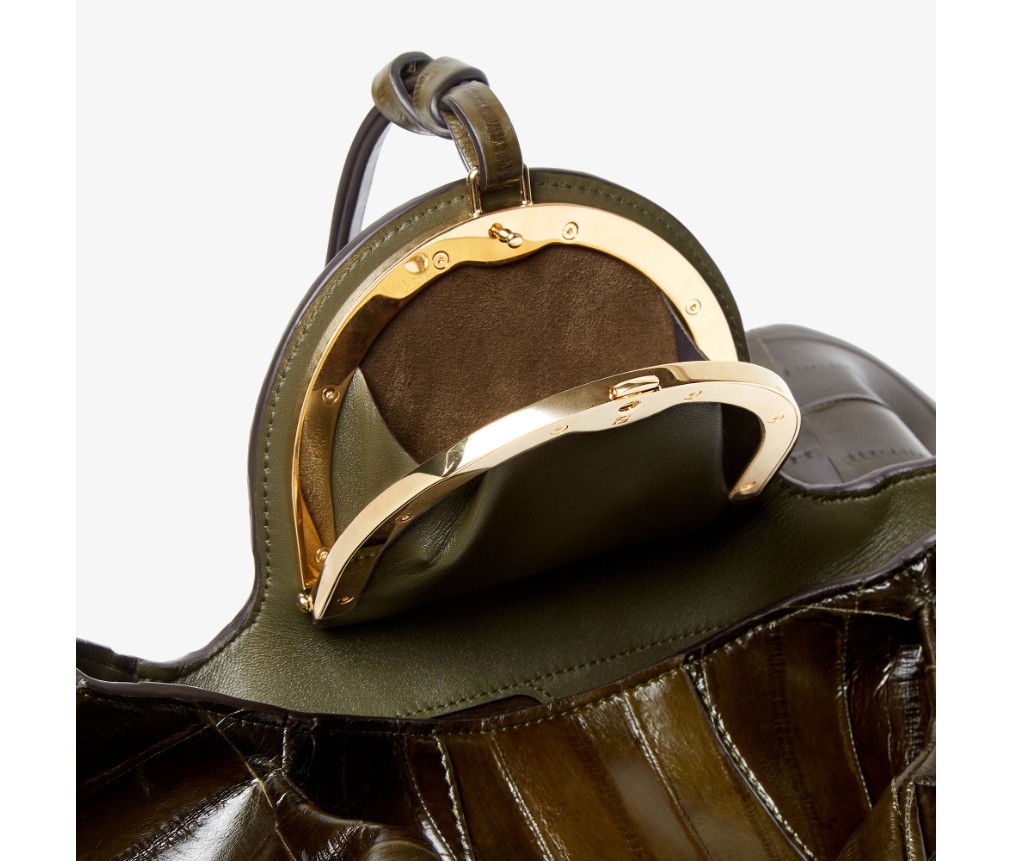 광택이 나는 마감 처리와 상징적인 페퀸 스트라이프 모티브를 연상시키는 인레이가 적용된 프리미엄 올리브 그린 해그피쉬 가죽으로 제작되었습니다.