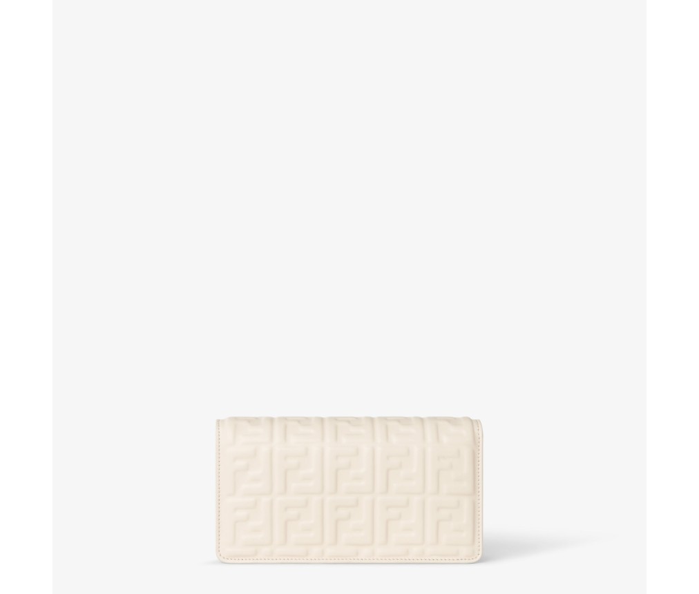 플랩과 FF 클래스프가 있는 컴팩트한 바게트 지갑입니다. 내부 수납공간에는 카드 슬롯 6개가 있습니다. 길이 조절이 가능한 가죽 숄더 스트랩과 탈부착 가능한 얇은 체인 숄더 스트랩이 있어 클러치처럼 들거나, 겨드랑이에 끼거나, 크로스백으로 연출할 수 있습니다. 부드러운 카멜리아 나파 가죽 소재에 입체적인 FF 모티프가 양각으로 새겨져 있습니다. 골드 마감 메탈 장식이 특징입니다.