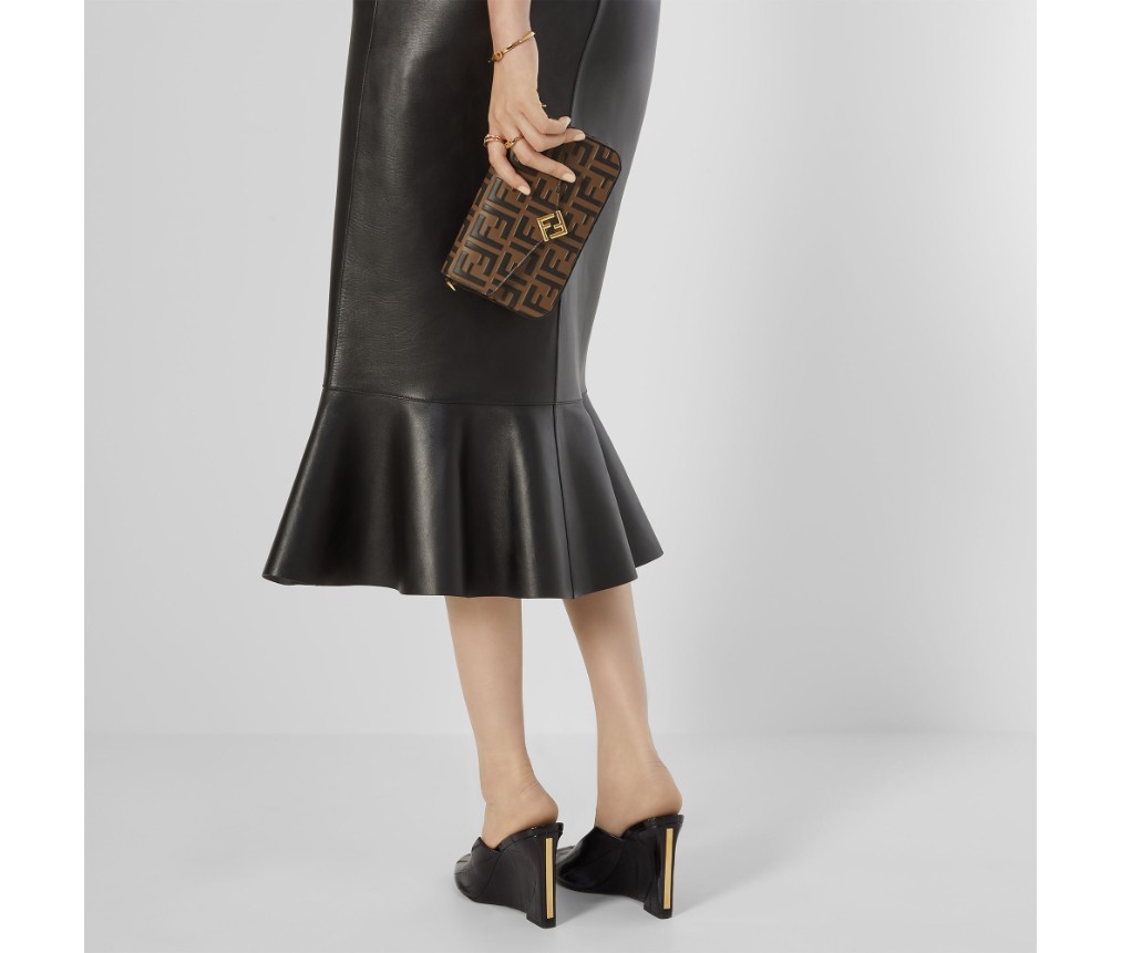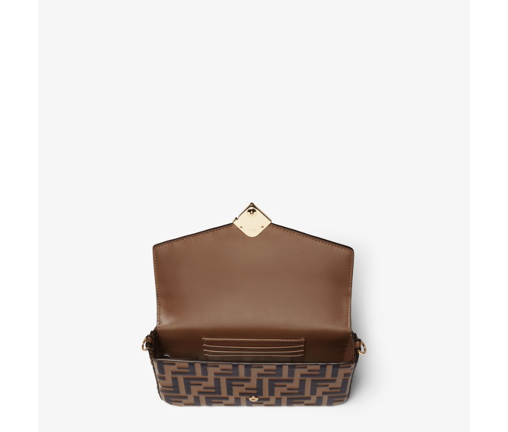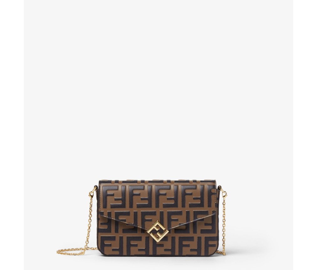 기하학적인 플랩과 대각선 FF 로고가 돋보이는 FF 다이아몬드 컴팩트 지갑입니다. 내부 수납공간에는 카드 슬롯 4개가 있습니다. 얇은 탈부착형 체인 숄더 스트랩을 활용하세요. 브라운 송아지 가죽 소재에 FF 로고가 양각으로 새겨져 있습니다. 골드 마감 메탈 장식이 돋보입니다.