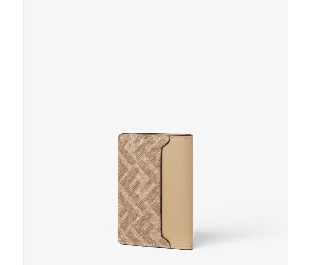 내부에 카드 슬롯 3개와 플랫 포켓 3개, 뒷면 플랫 포켓 1개가 있는 컴팩트한 접이식 카드 홀더입니다. 베이지색 가죽 소재에 베이지색 FF 캔버스 디테일이 더해졌습니다. 팔라듐 마감의 메탈 FF 스퀘어 모티프가 특징입니다.
