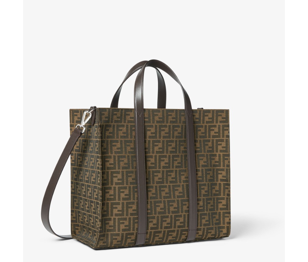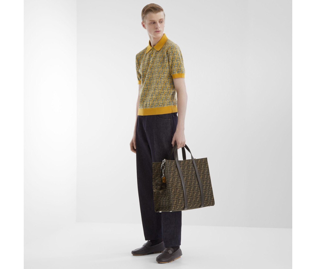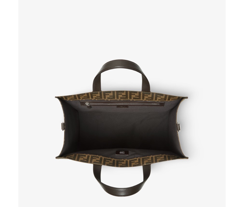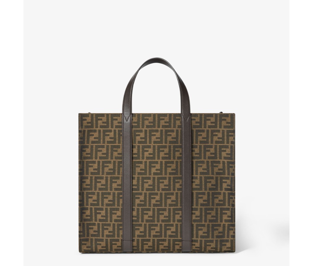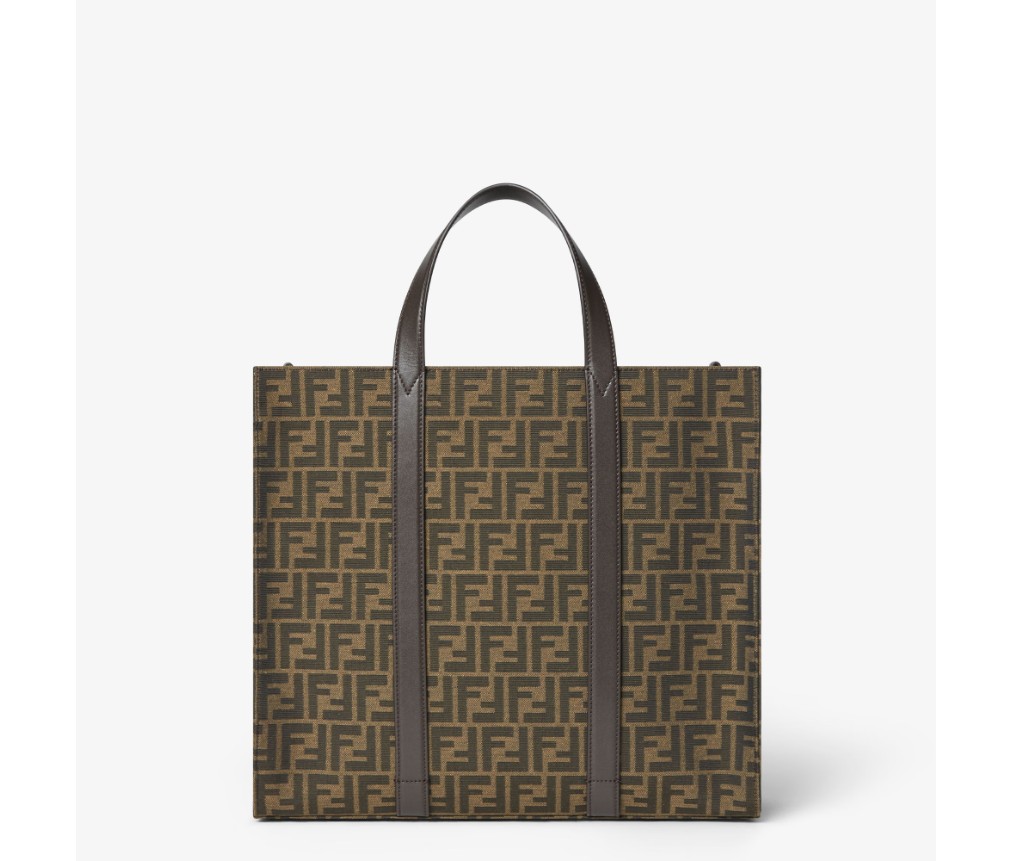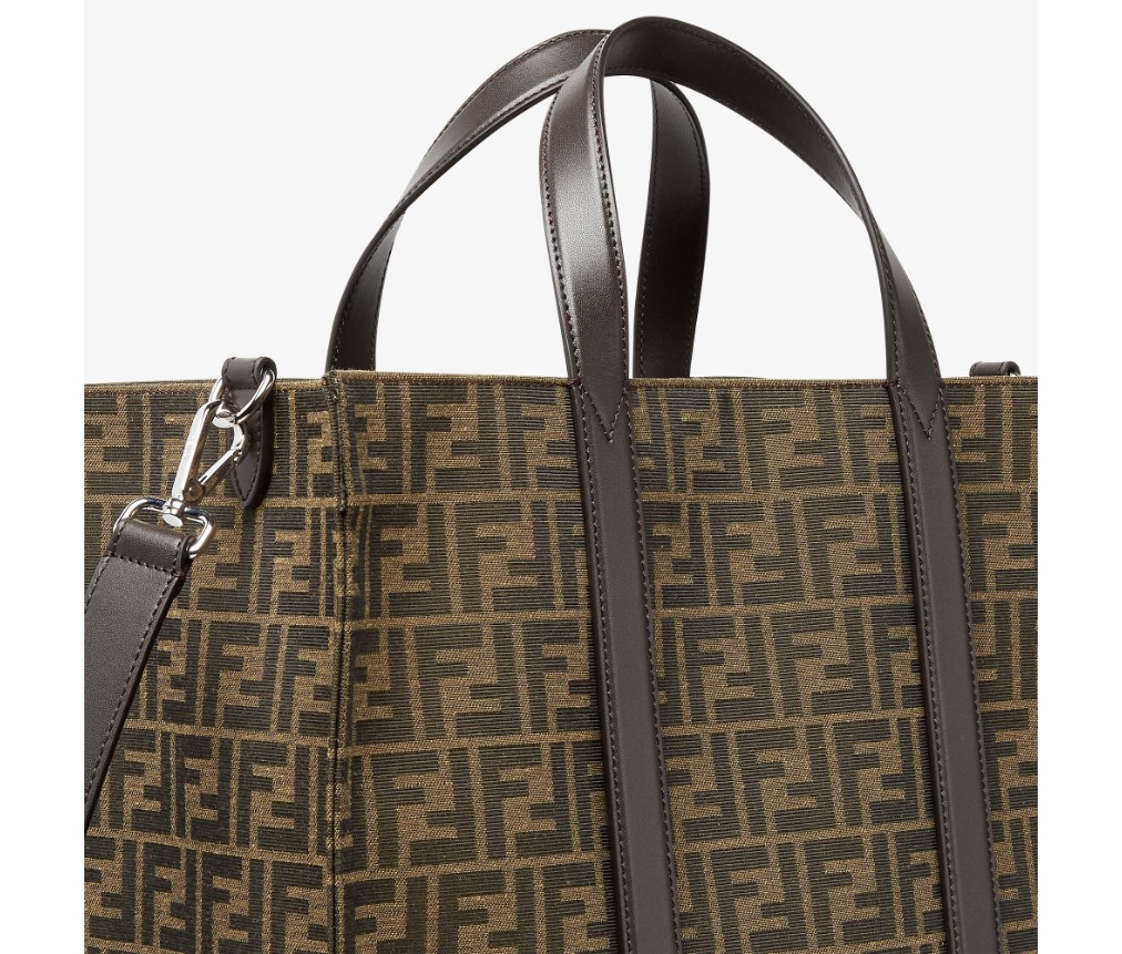 갈색 FF 모티브가 들어간 재활용 자카드 원단으로 만든 넉넉한 크기의 쇼퍼백입니다.