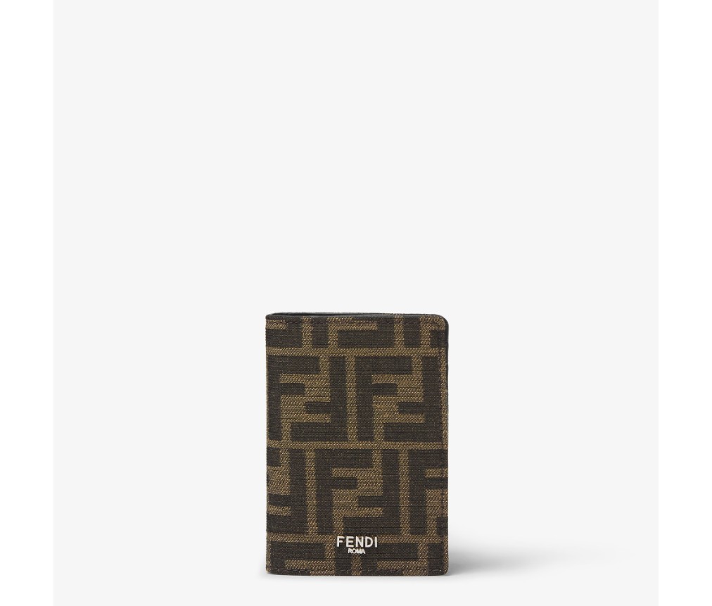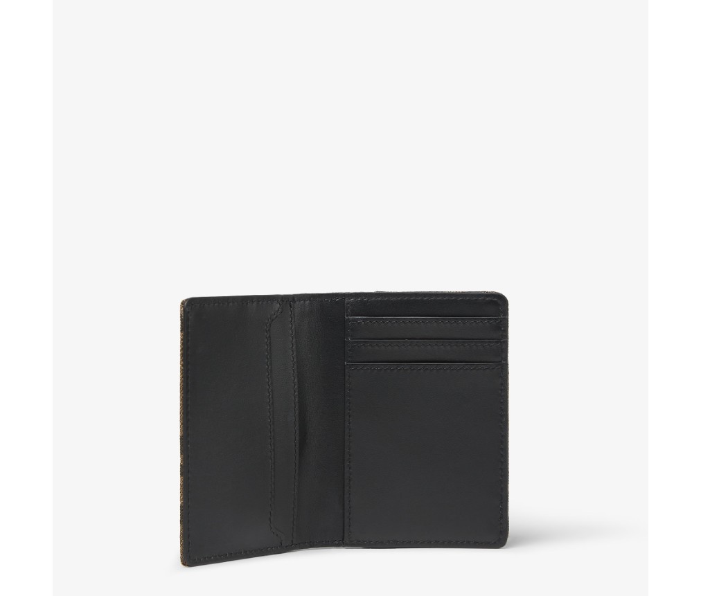 내부에 카드 슬롯 3개, 플랫 포켓 1개, 뒷면에 1개의 포켓이 있는 컴팩트한 접이식 카드 홀더입니다. 블랙 가죽 소재에 브라운 및 토바코 자카드 FF 패브릭 디테일이 더해졌습니다. 팔라듐 마감 메탈 펜디 로마 레터링.