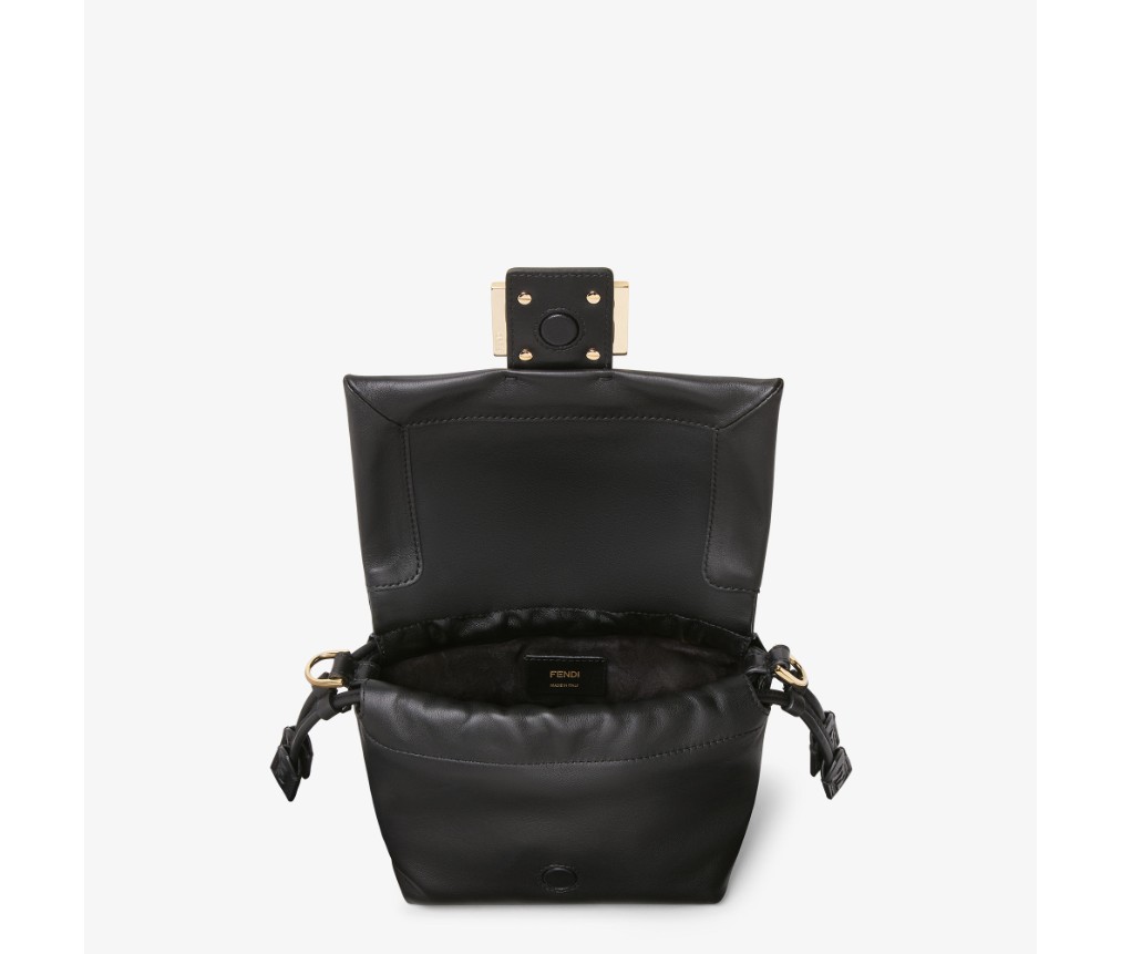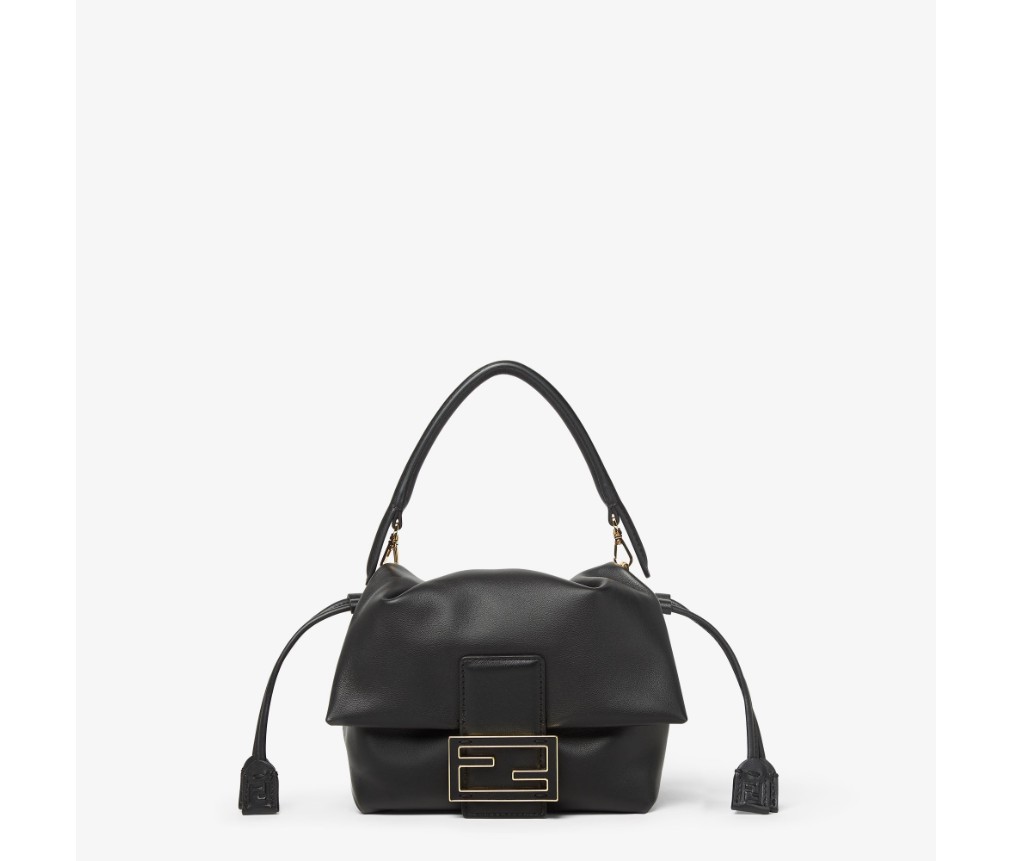 부드러운 검은색 나파 가죽으로 제작되었으며, 톤온톤 가죽 인서트가 달린 대형 금속 FF 클래스프로 장식되었습니다.