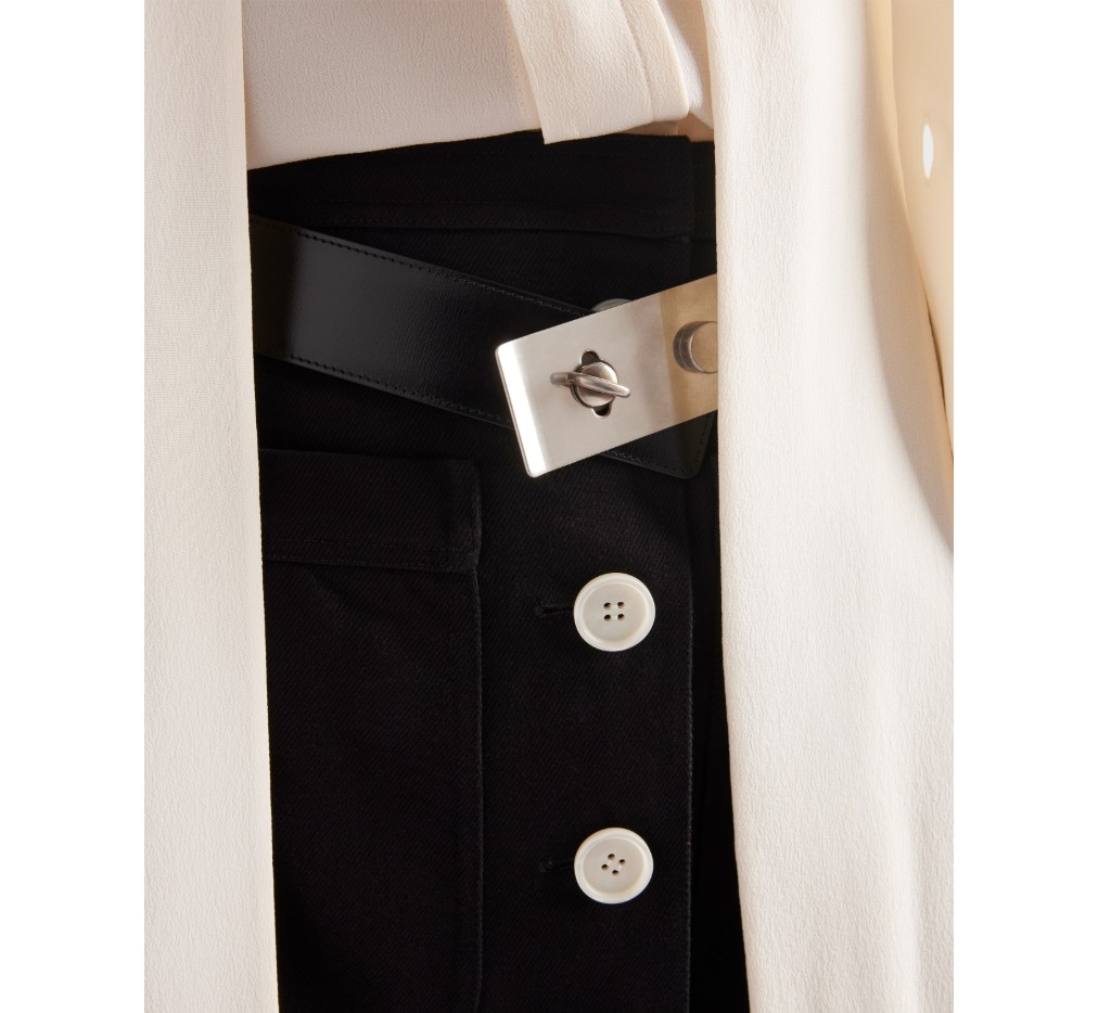 이 가죽 벨트는 대담한 디테일이 특징이며, 아카이브에서 영감을 받은 금속 버클로 완성된 우아한 디자인입니다.