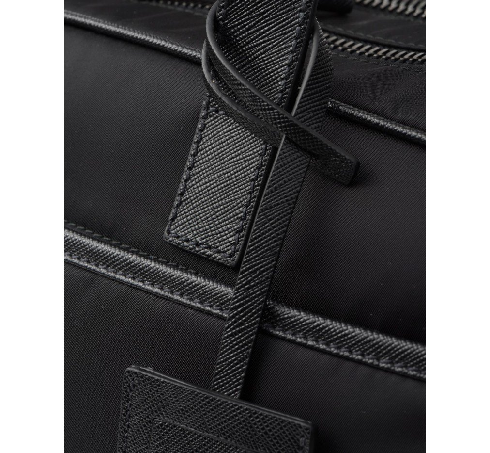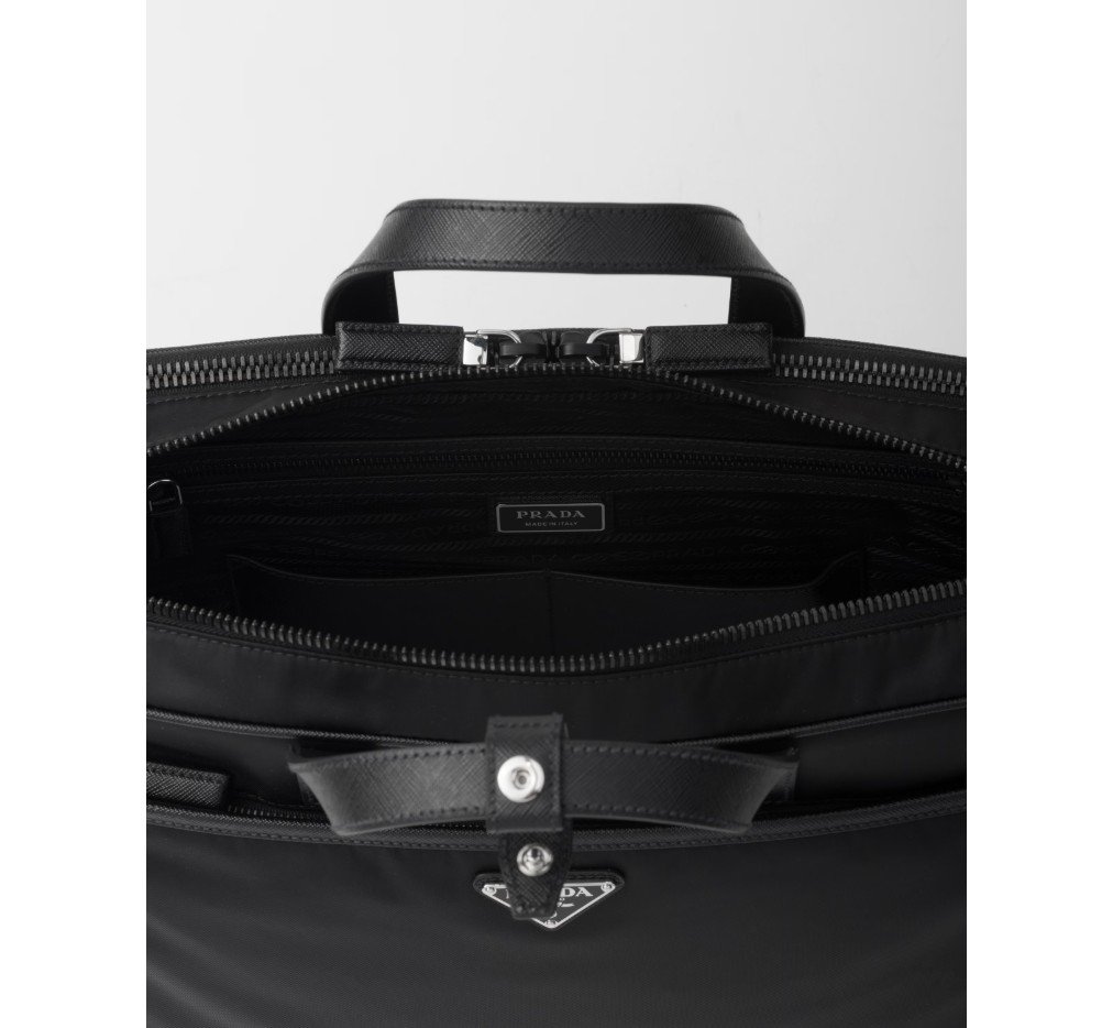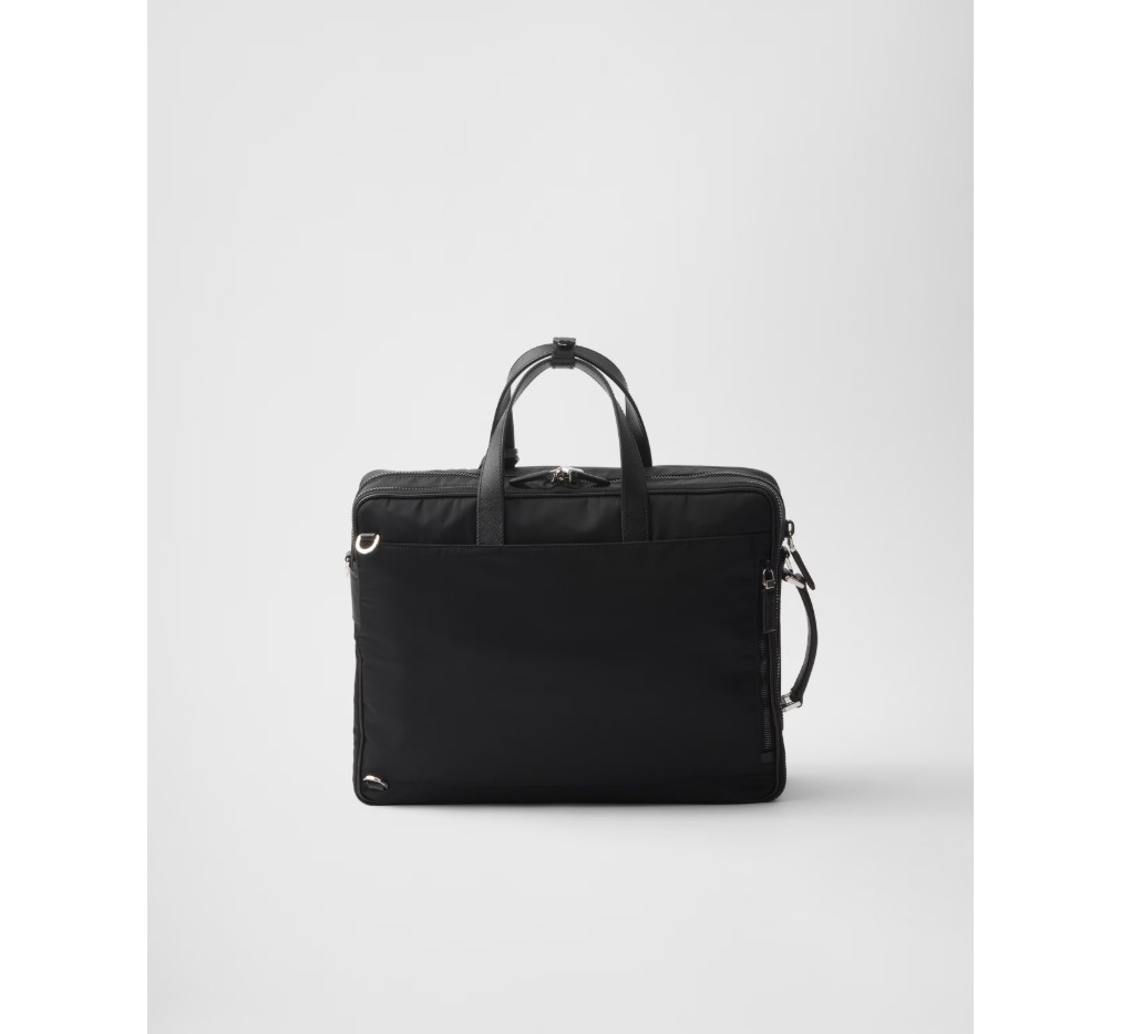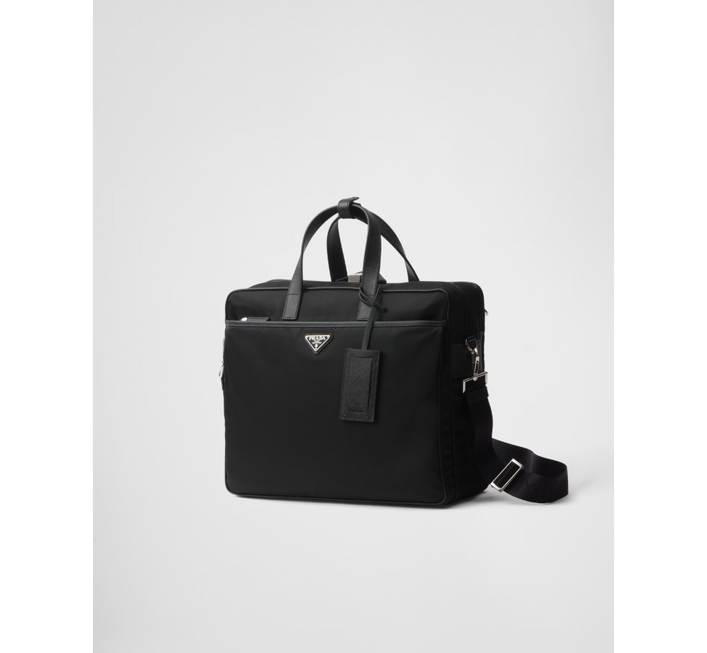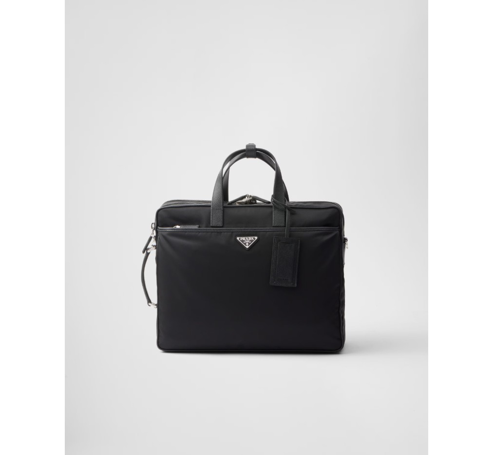 실용적이면서도 세련된 이 브리프케이스는 프라다 컬렉션의 독특한 소재인 레-나일론(RE-NYLON) 소재를 지속 가능한 방식으로 진화시킨 제품입니다. 사피아노 가죽 디테일이 더해진 재생 나일론 소재는 두 개의 수납공간, 여러 개의 지퍼 포켓, 그리고 트롤리 밴드를 특징으로 하는 다재다능하고 기능적인 구조를 자랑합니다. 필요에 따라 백팩으로도 변형 가능한 넉넉한 수납공간은 프라다의 아이코닉한 시그니처인 에나멜 메탈 삼각형 로고로 완성됩니다.