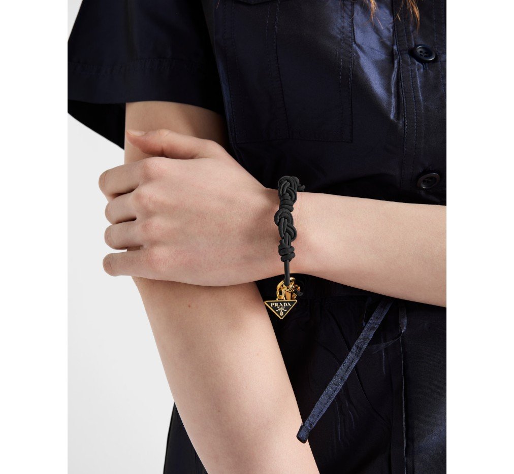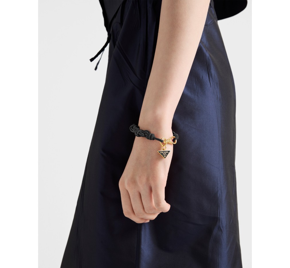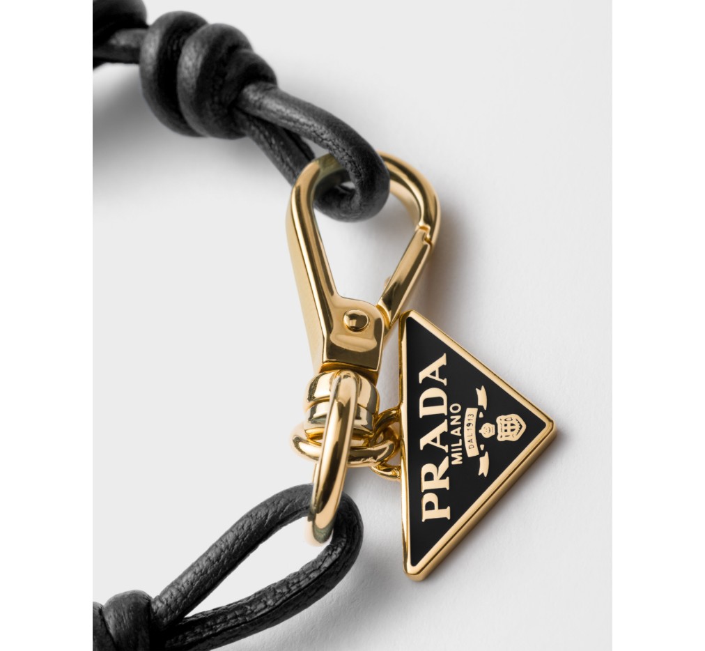 이 모던하고 세련된 나파 가죽 브레이슬릿은 강렬한 색상 조합이 돋보입니다. 프라다 컬렉션의 상징적인 시그니처인 에나멜 처리된 금속 삼각형 로고가 디자인을 완성합니다. – 제품 코드: 1IB733_038_F0002