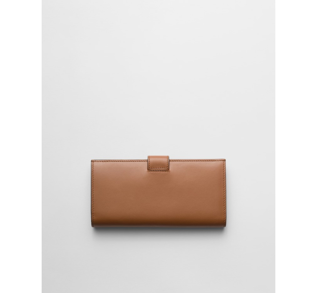 스냅 잠금 장치가 달린 이 지갑은 고급 가죽으로 제작되었습니다. 에나멜 처리된 금속 삼각형 로고가 액세서리를 장식합니다.