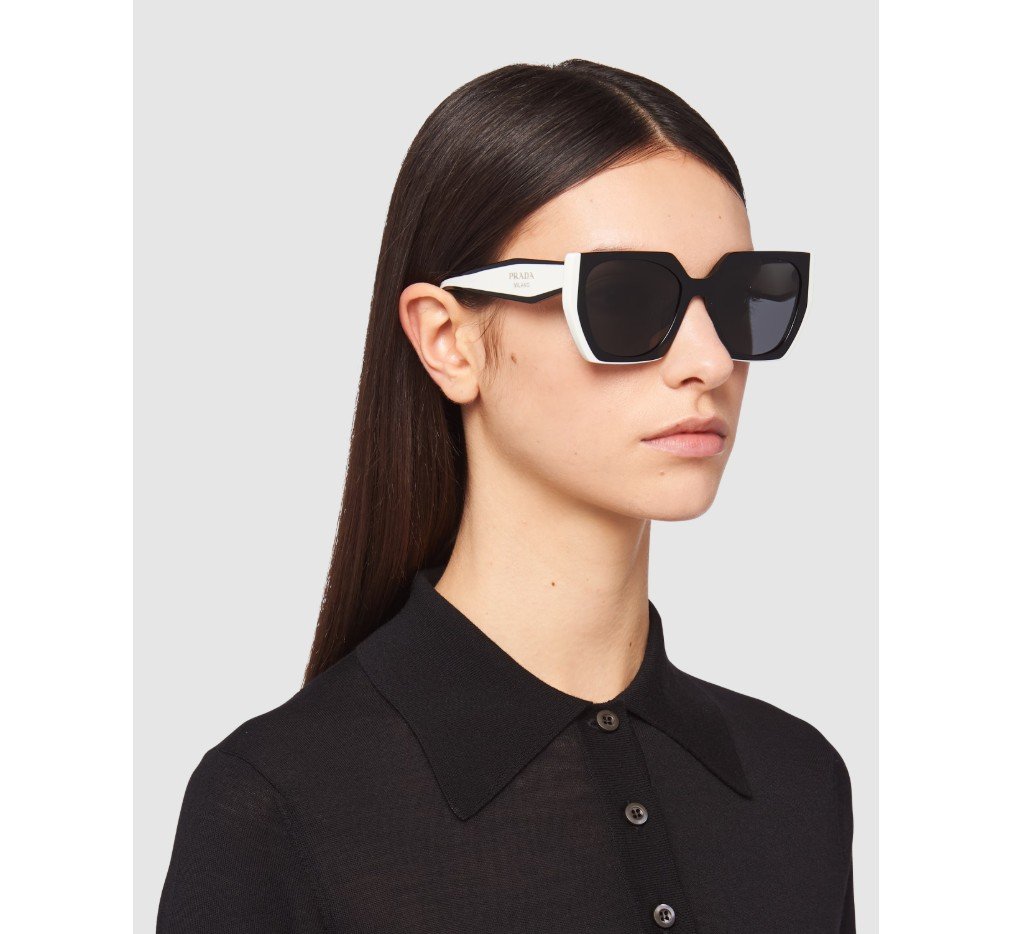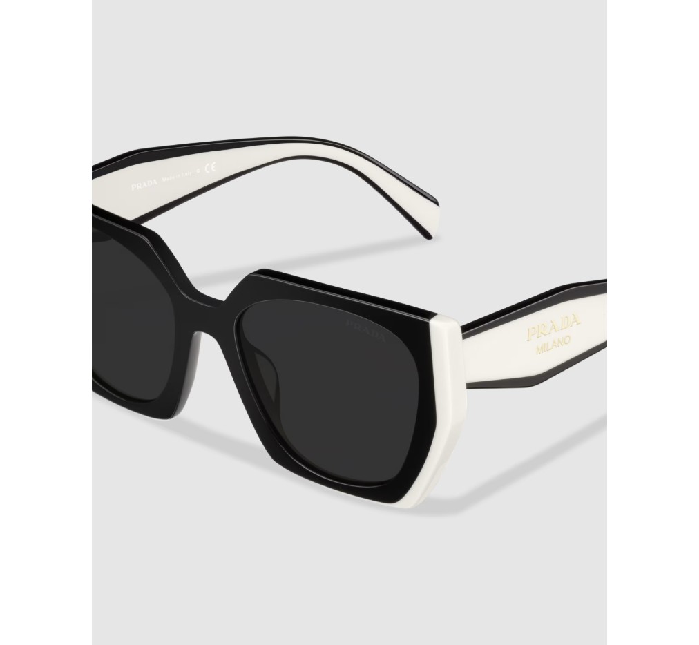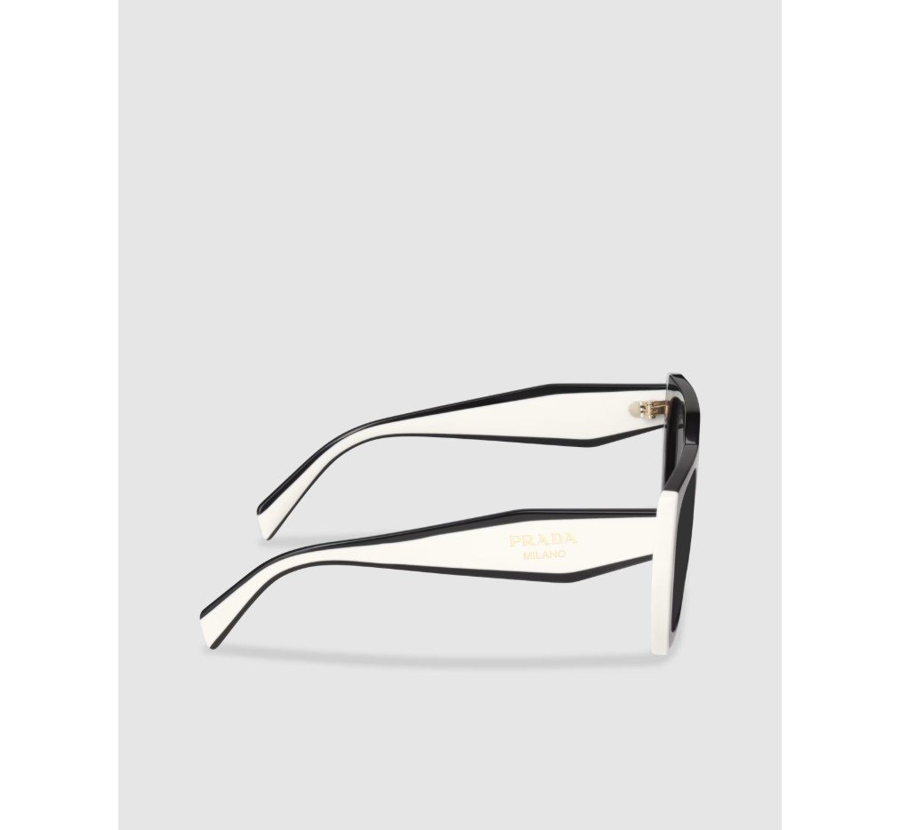 독특한 직사각형 실루엣과 대담하고 굵은 라인이 특징인 선글라스. 프레임 앞면의 사이드 트림에 접착된 세련된 아세테이트 레이어와 기하학적인 템플이 현대적이고 우아한 매력을 선사합니다. 프라다 레터링 로고.