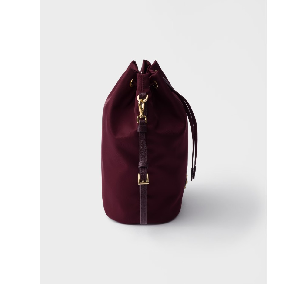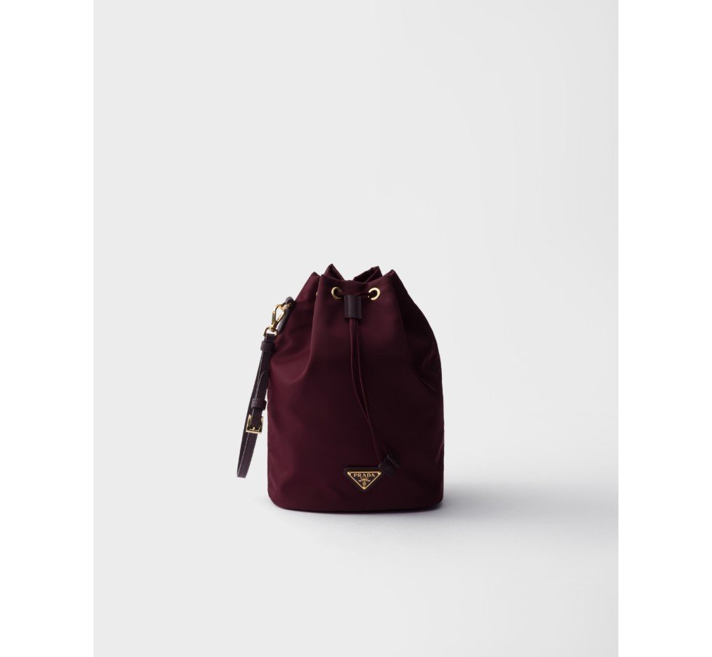 바다에서 모은 재활용 플라스틱 소재로 만든 프라다의 혁신적인 리나일론 소재로 만든 이 끈 달린 파우치는 탈부착 가능한 가죽 손목 끈이 돋보이는 실용성이 돋보입니다.