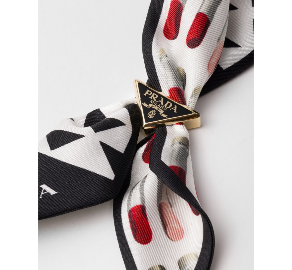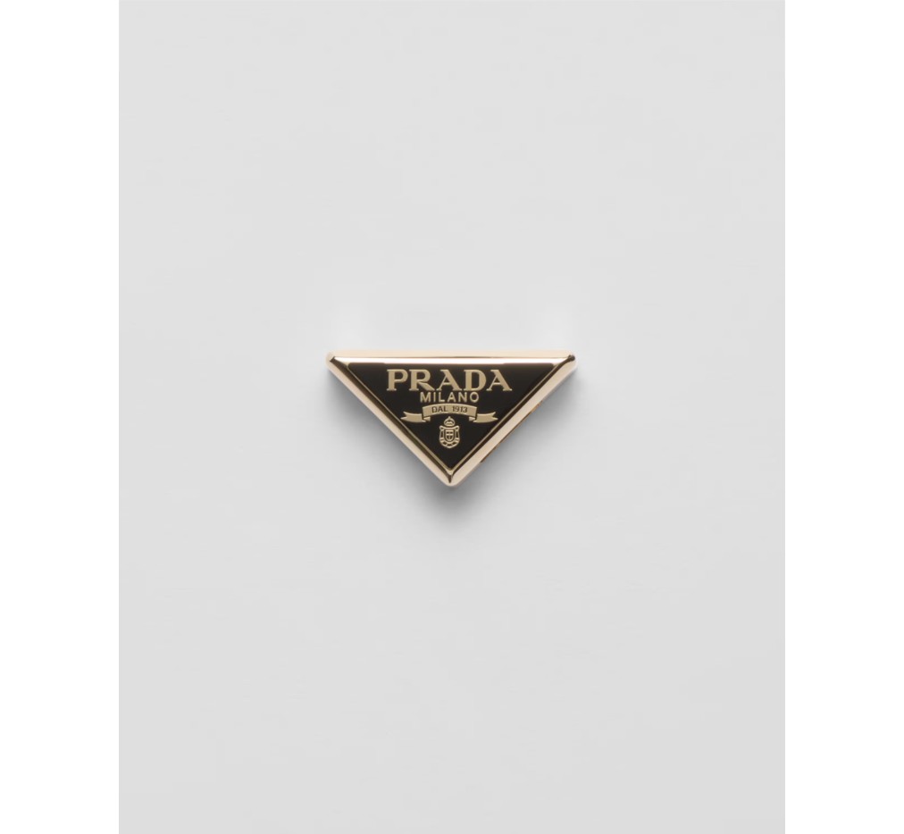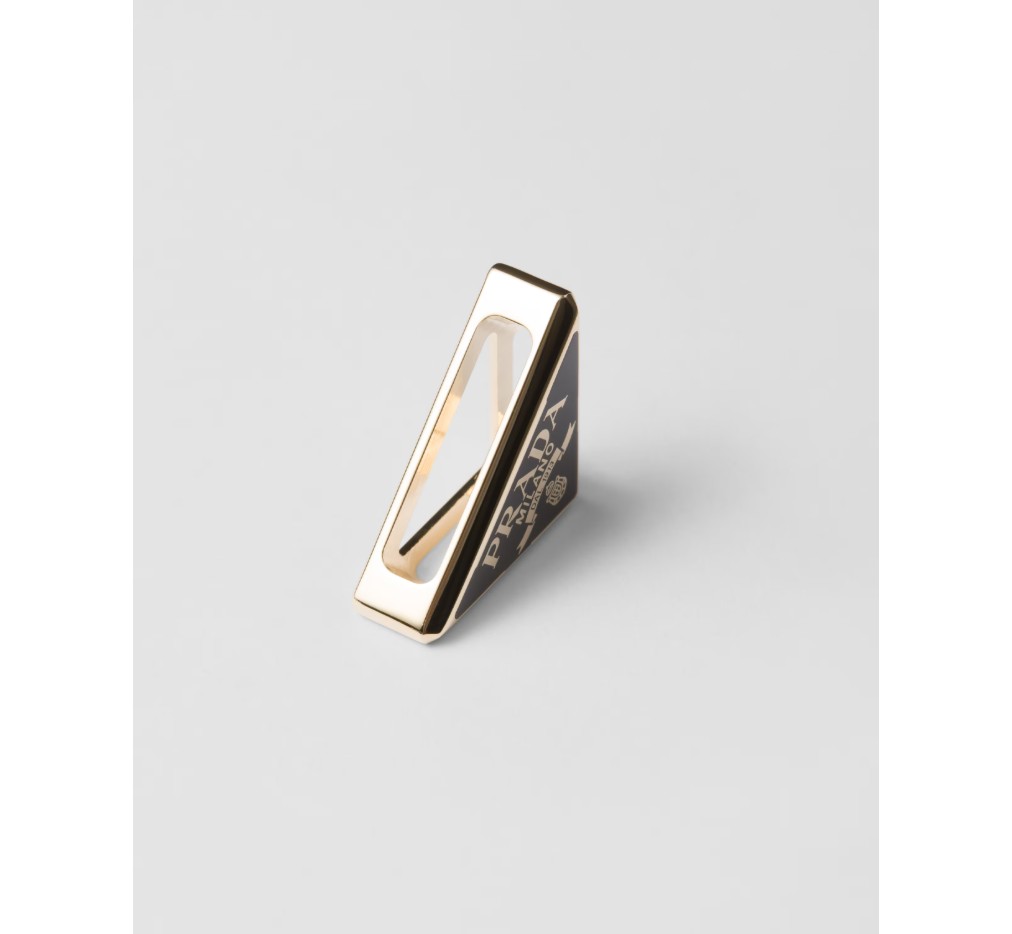 독특하고 보편적인 프라다 삼각형 로고가 항상 새롭고 현대적인 버전으로 선보입니다. 상징적인 기하학적 모양이 이 세련된 에나멜 메탈 스카프 클립의 윤곽을 그려냅니다.