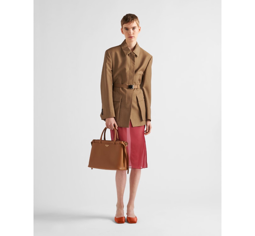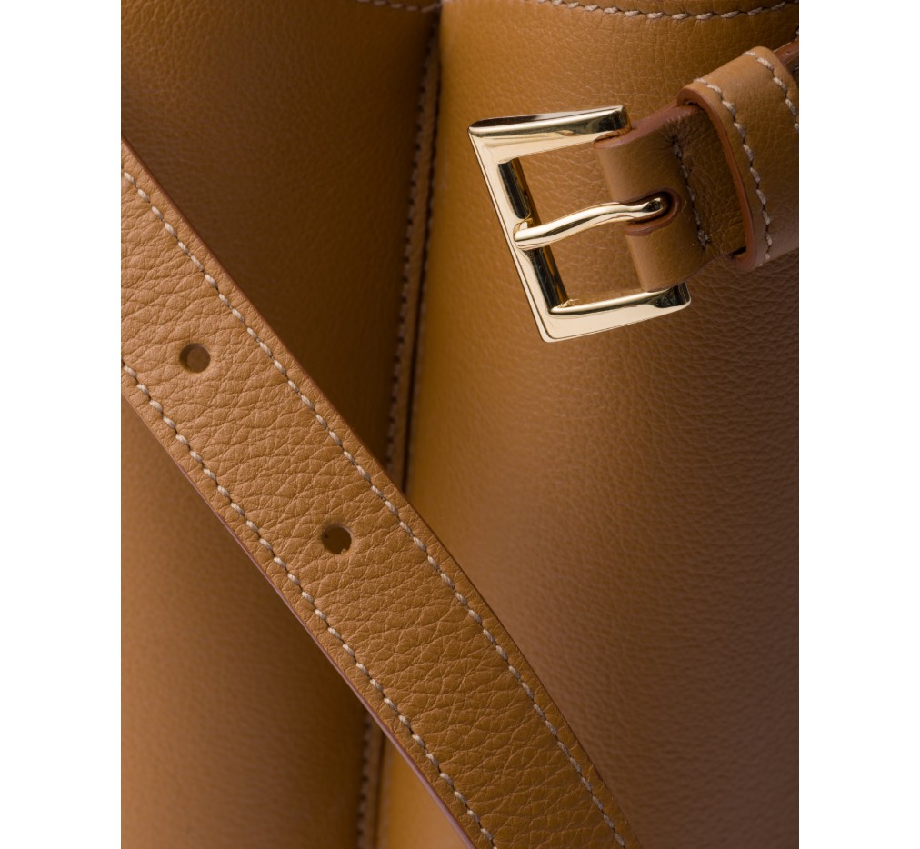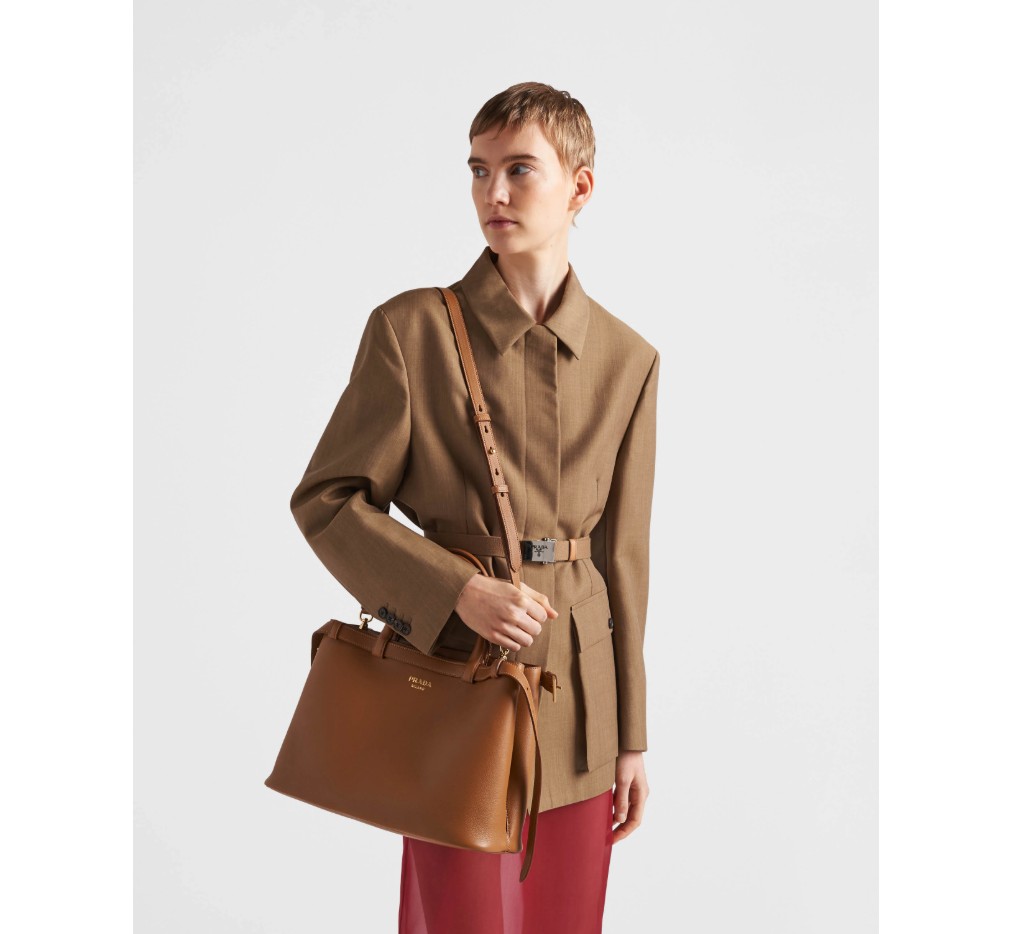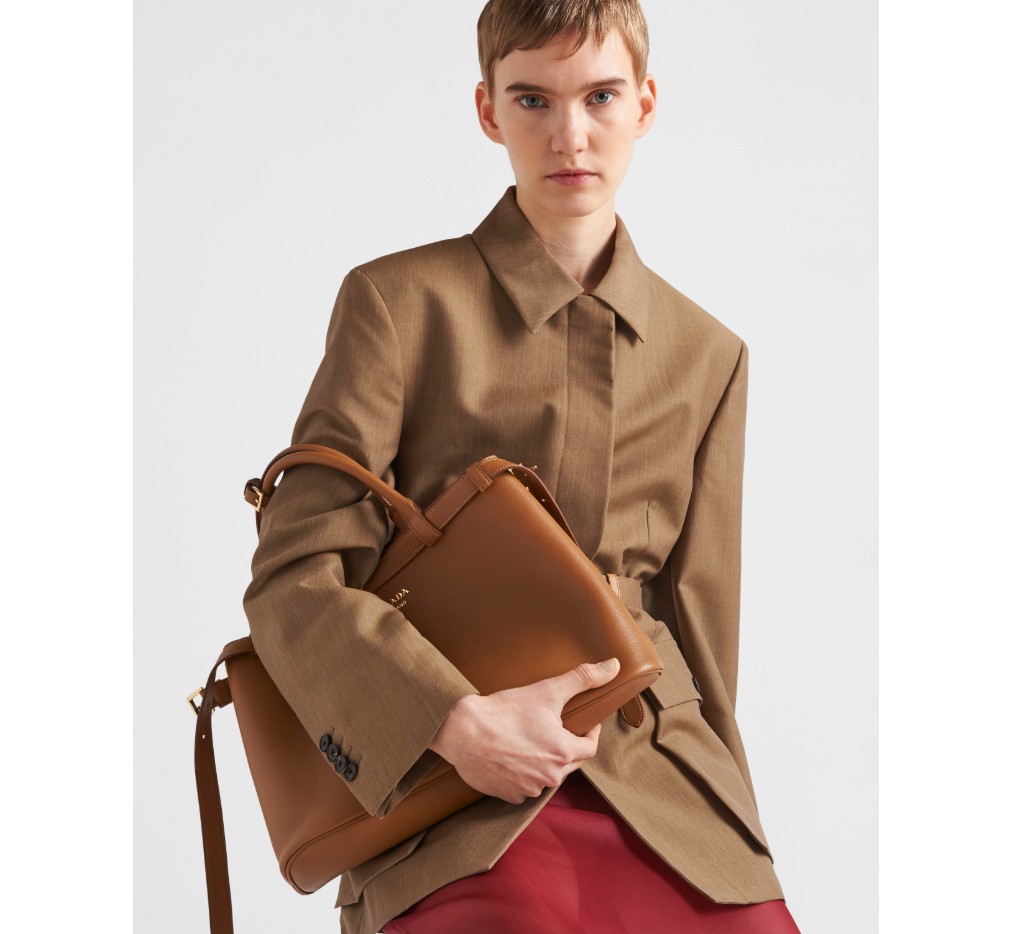 깔끔한 라인과 세련된 디테일은 프라다의 심플함과 디테일, 기능성과 우아함이 조화를 이루는 이중적인 미학을 보여줍니다. 이 가죽 백은 실용적이면서도 세련된 디자인으로 브랜드의 스타일리시한 코드를 담아냈으며, 나파 가죽 소재의 내부는 세 개의 수납공간을 특징으로 합니다. 넉넉한 실루엣은 세련되면서도 모던한 가죽 벨트의 독특한 터치로 더욱 생동감 넘칩니다. 22kt 금박으로 핫 스탬핑 처리된 레터링 로고는 백에 소중한 시그니처를 더합니다. – 제품 코드: 1BA417_2CYS_F03BH_V_OOO
