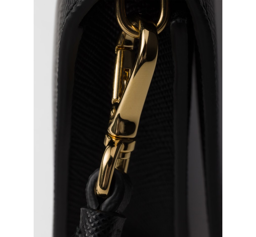 프라다 컬렉션의 상징적인 소재인 사피아노 가죽은 왁스 마감 처리된 크로스해치 패턴으로 각 디자인에 다재다능하고 우아한 매력을 더합니다. 이 미니 백은 매끈하면서도 세련된 기하학적 형태에 메탈 하드웨어가 더해져 빛을 발하며, 프라다의 상징적인 에나멜 메탈 삼각형 로고가 장식되어 있습니다. – 제품 코드: 1NF059_2DB3_F0002
